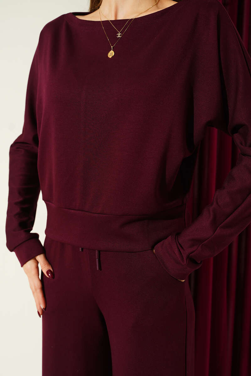 Düşük Kol Detaylı Triko Tunik Bordo