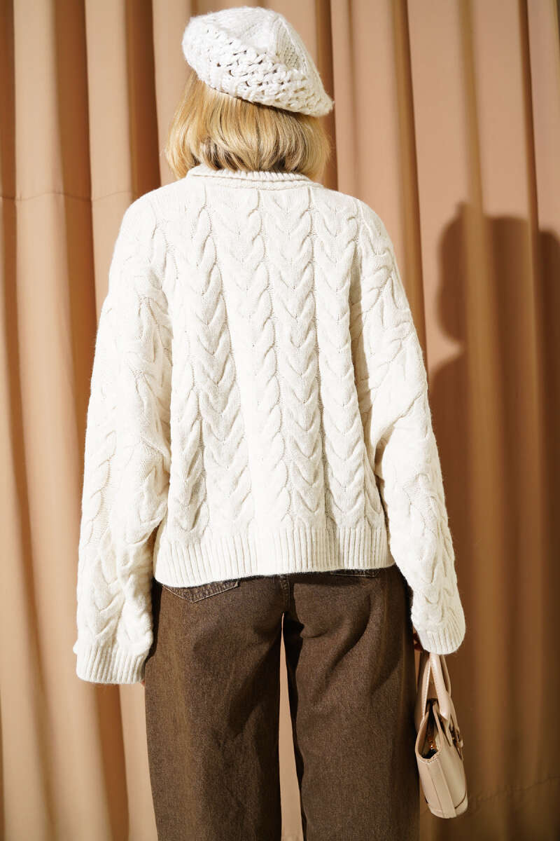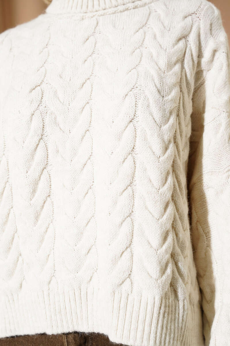 Yarasa Kol Boğazlı Triko Kazak Bej
