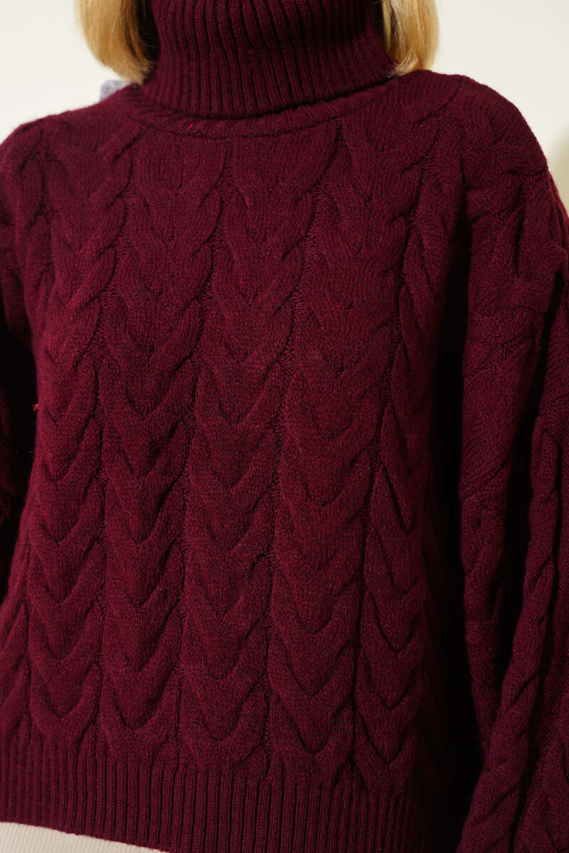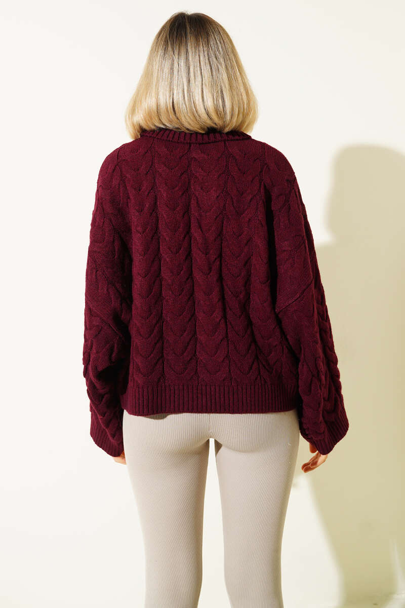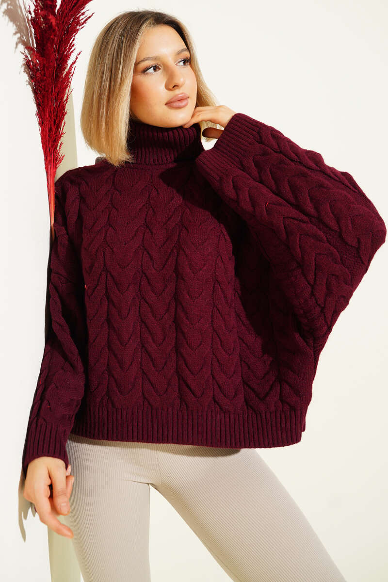 Yarasa Kol Boğazlı Triko Kazak Bordo