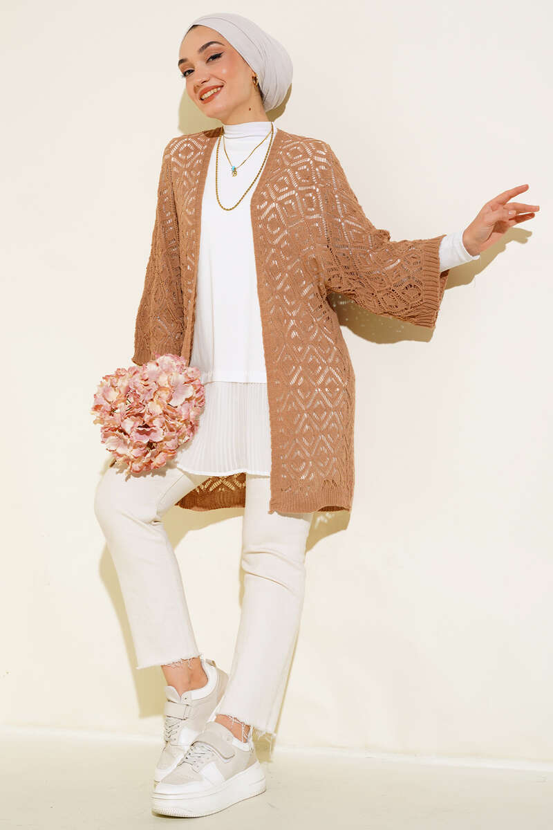 Yeni sezon hırka modelimiz sizlerle beraber. Hırkamız yarasa kol dantel desenlidir. Yarasa kol modeldir. Salaştır. Hırkamız kombinlerinizin tamamlayıcı parçası olacaktır. Renk seçeneklerimiz vardır.