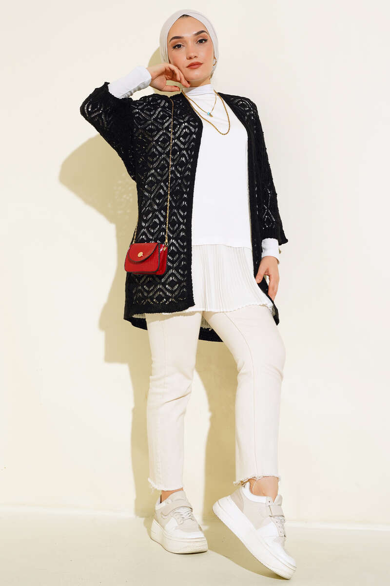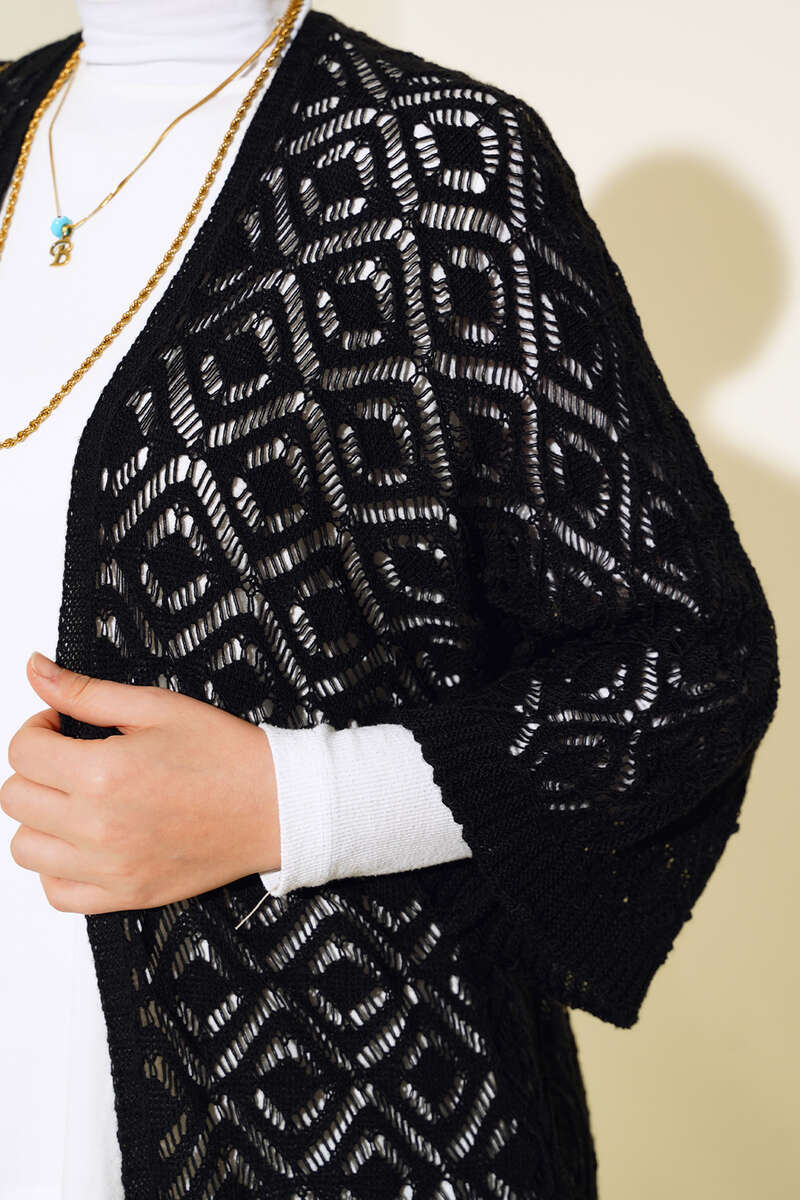 Yarasa Kol Dantel Hırka Siyah