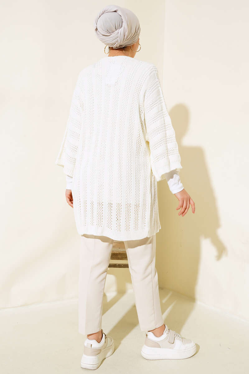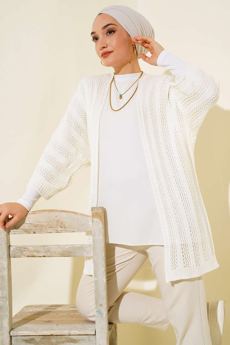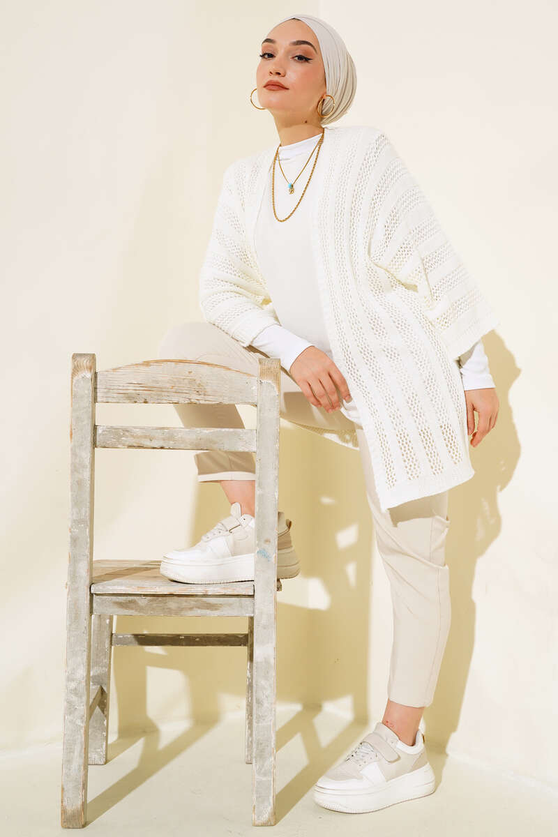Yeni sezon hırka modelimiz sizlerle beraber. Hırkamız yarasa koldur. Delikli tasarımıyla hareketlilik kazanmıştır. Salaştır. Hırkamız renk seçenekleriyle kombinlerinizin parçası olmayı bekliyor.