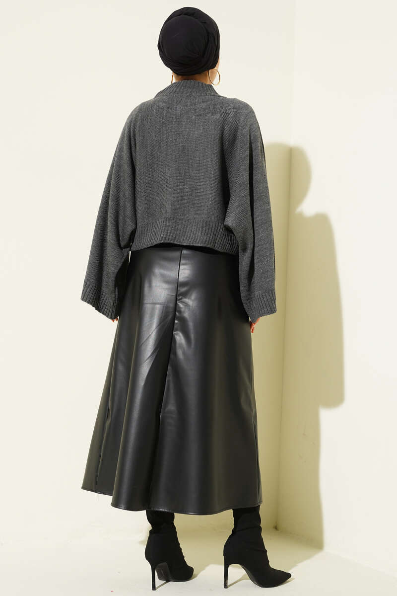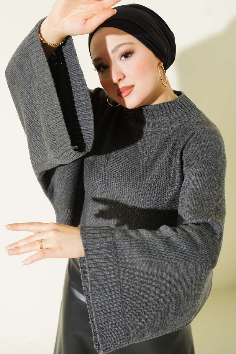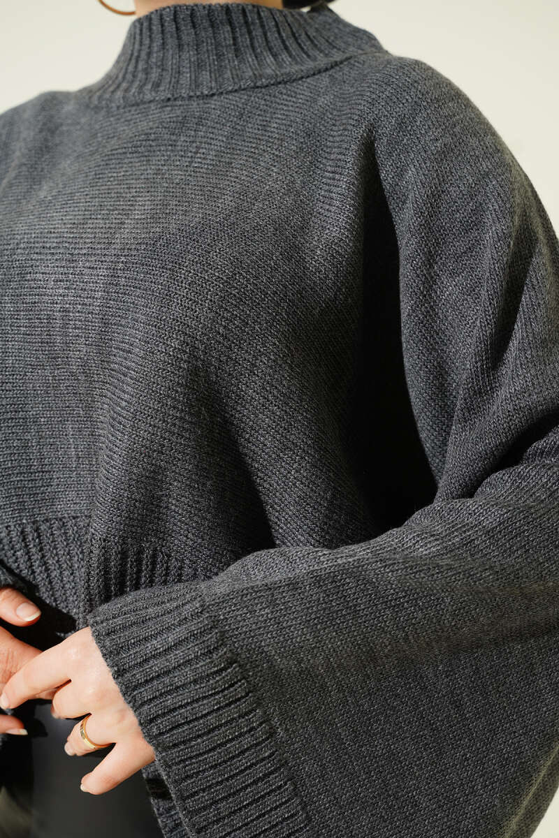 Yarasa Kol Dik Yaka Triko Kazak Siyah