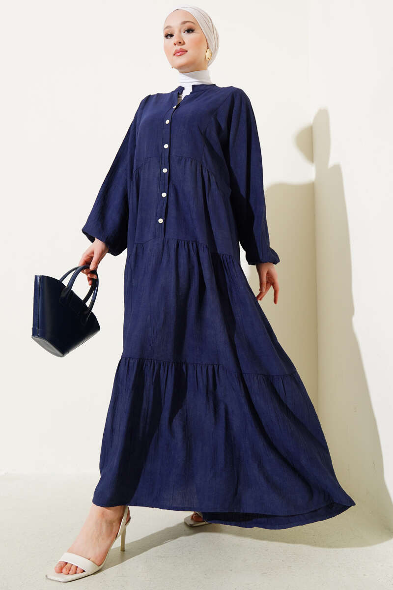 Yarasa Kol Düğmeli Kat Elbise Yağ Yeşili