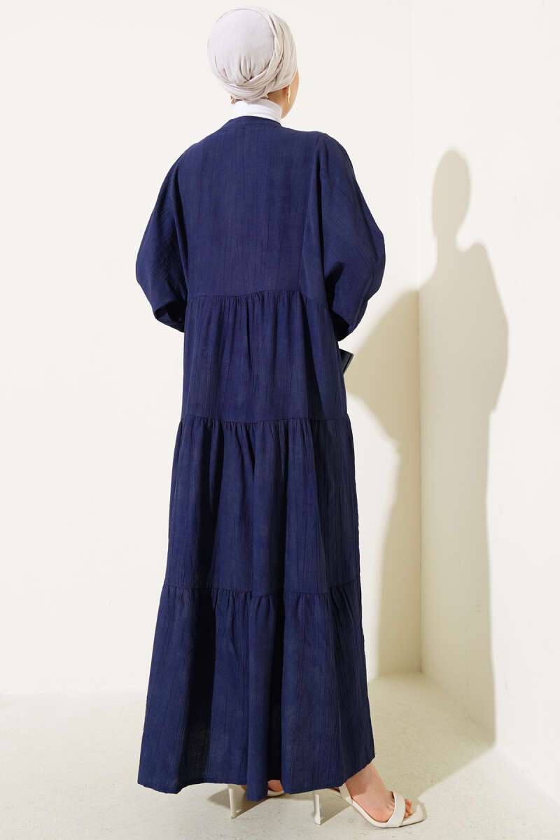Pelerin Detaylı Pileli Triko Elbise Lacivert