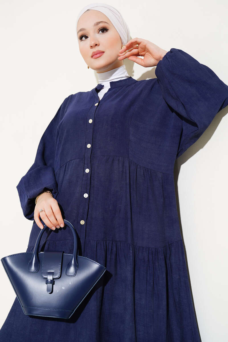Yarasa Kol Düğmeli Kat Elbise Haki