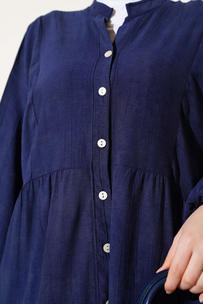Yarım Yaka Fermuarlı Scuba Elbise Lacivert