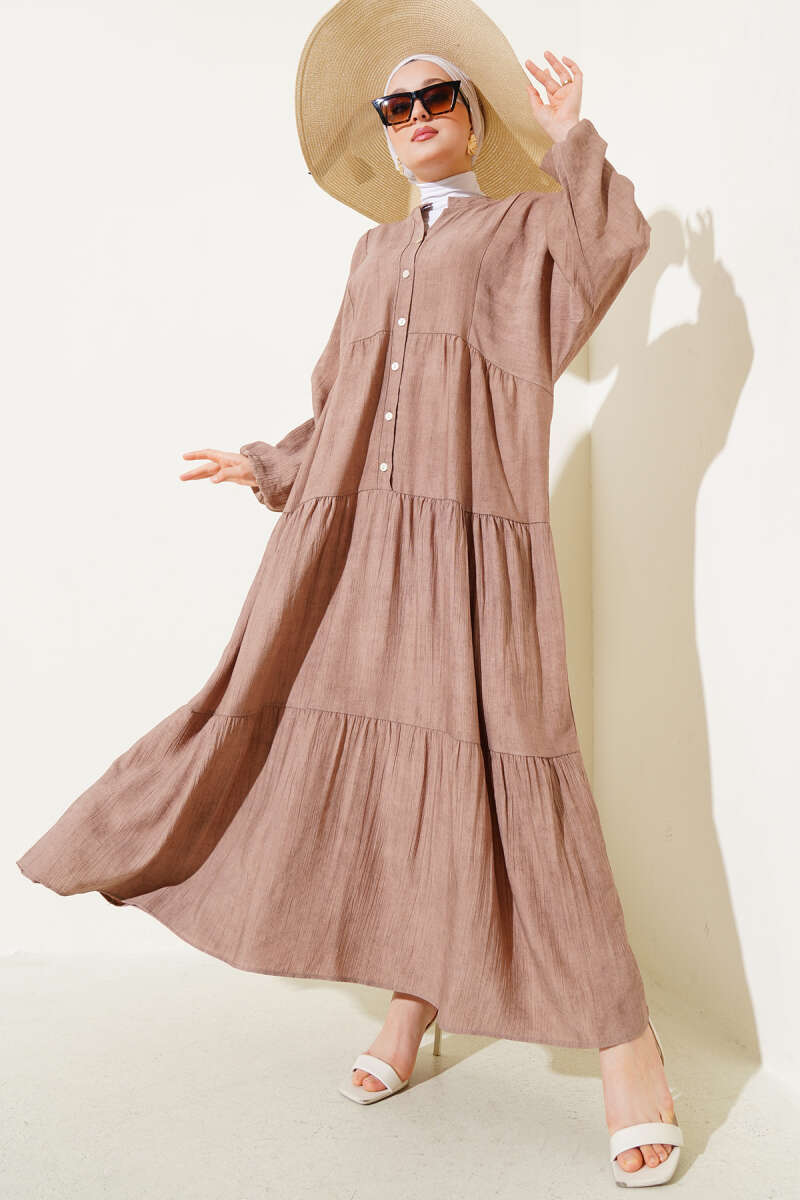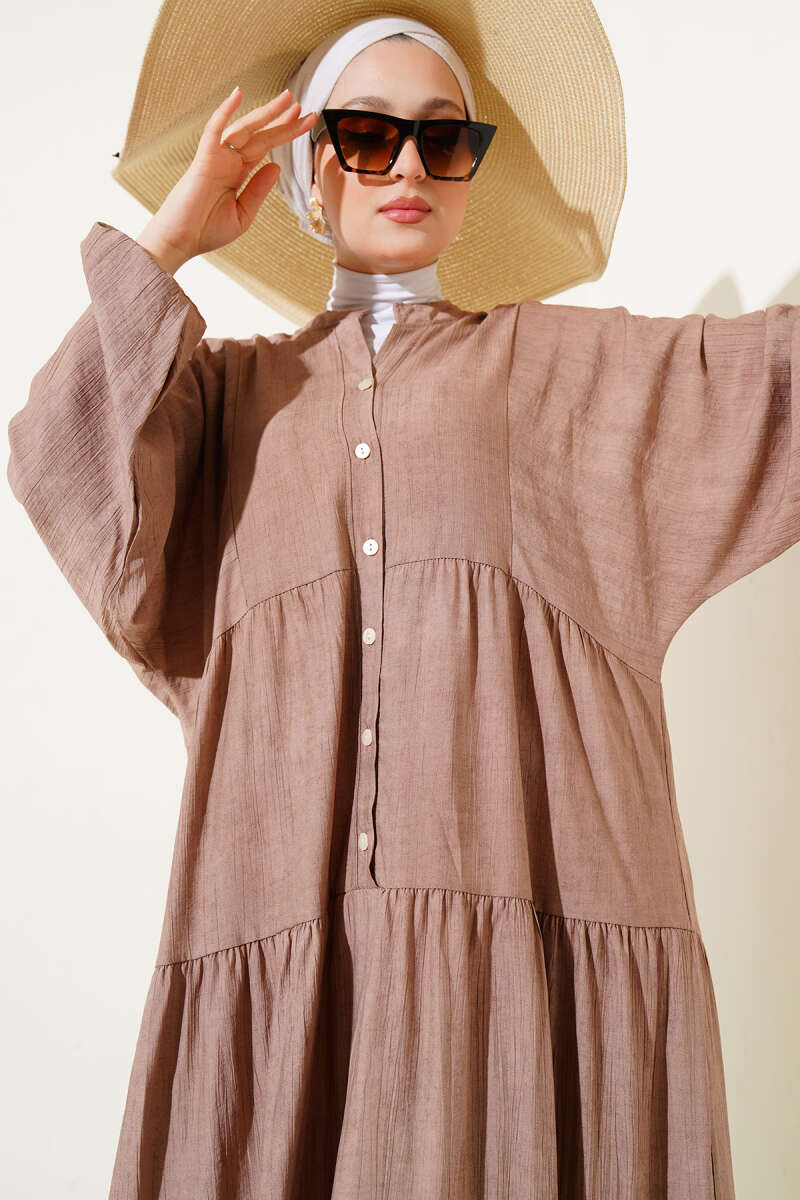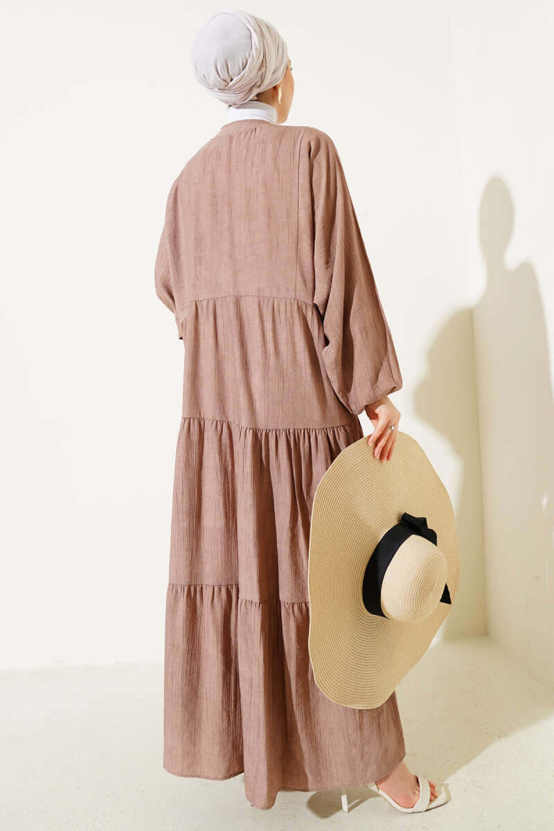 Pelerin Detaylı Pileli Triko Elbise Kahve