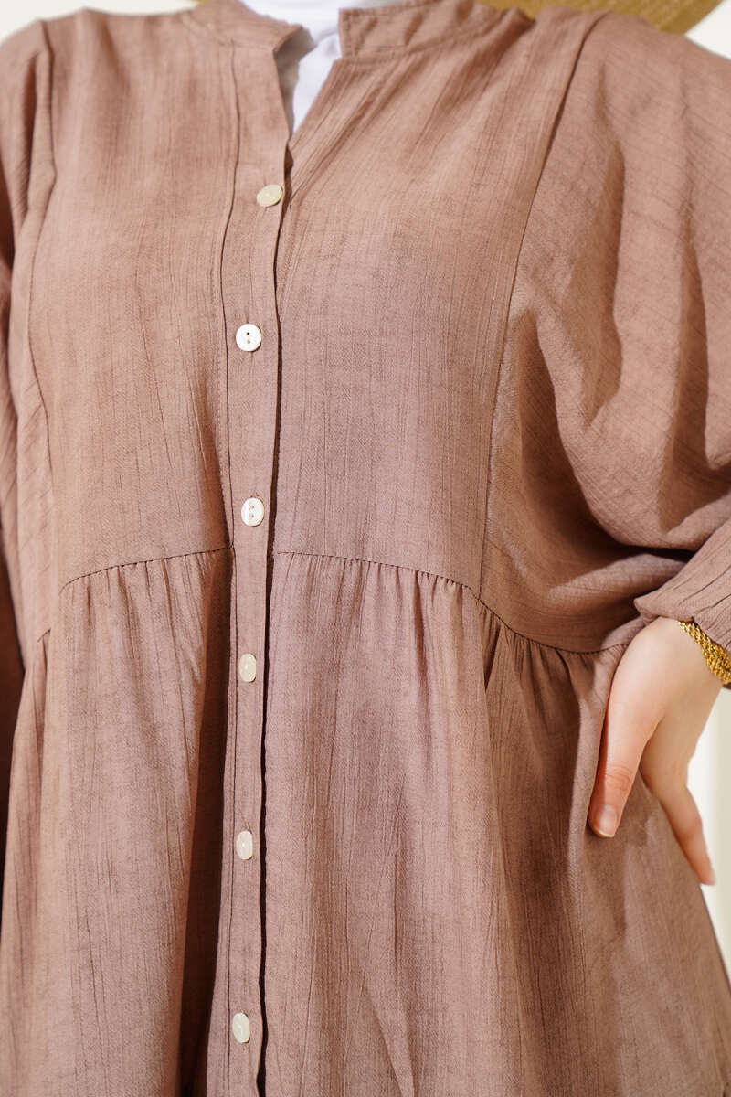 Bilek Düğmeli Fitilli Triko Tunik Pembe