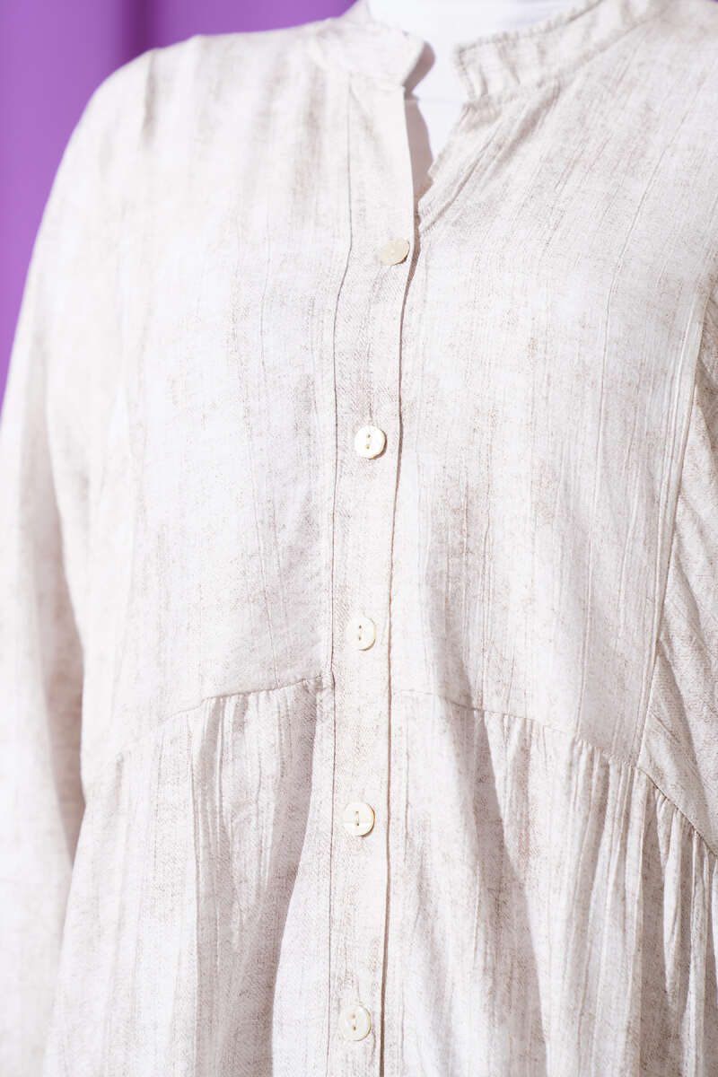 Gömlek Yaka Fiyonklu Triko İkili Takım Bej