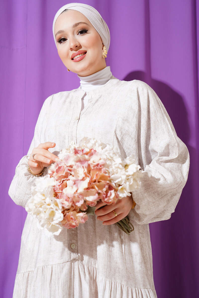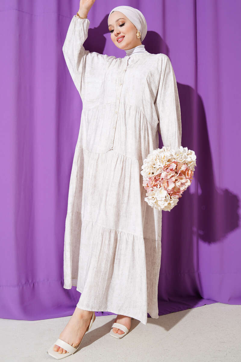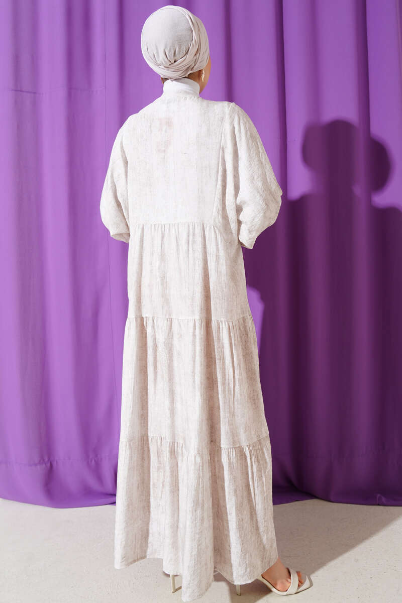 Pelerin Detaylı Pileli Triko Elbise Ekru