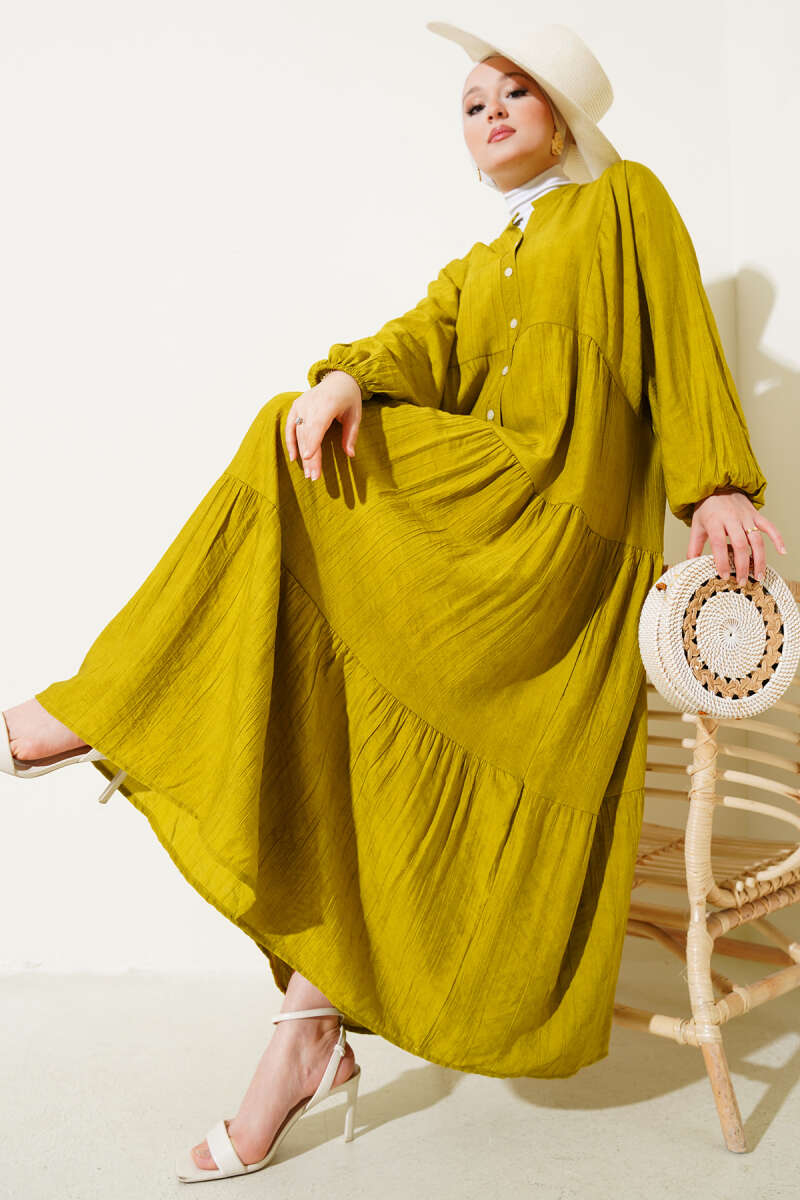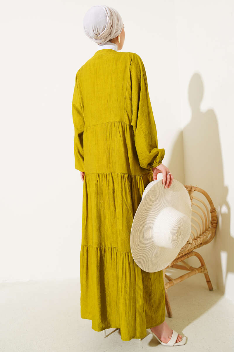 Pelerin Detaylı Pul Payet Abiye Elbise Haki