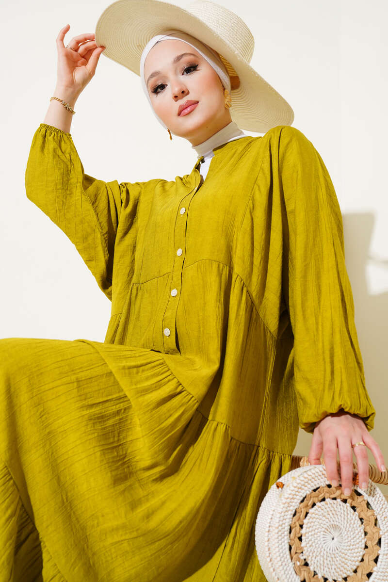 Metal Düğmeli Etekli Scuba İkili Takım Haki