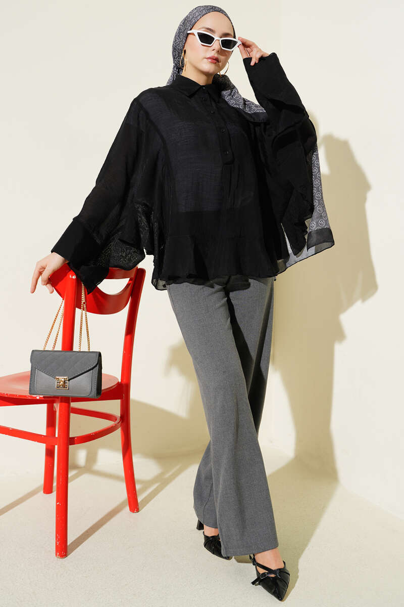 Çiçek İşlemeli Loyşa Bluz Sarı