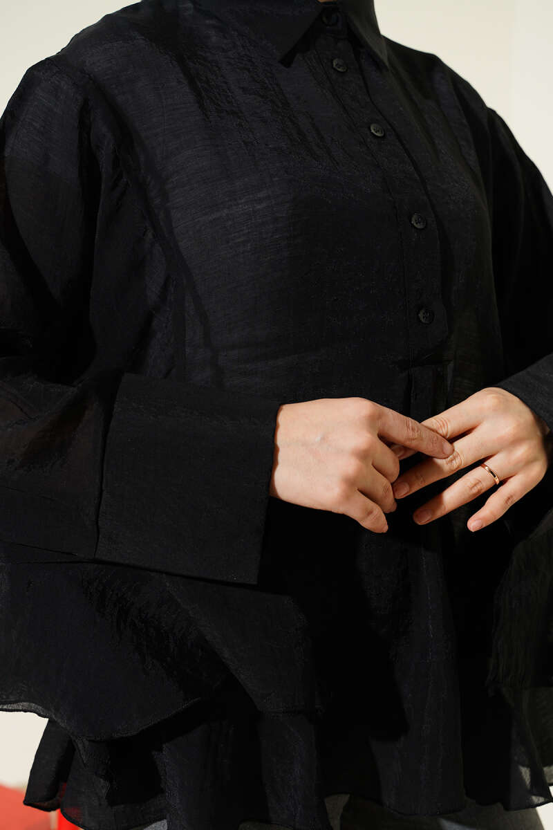 Omuz Vatkalı Degaje Yaka Sandy Bluz Ekru