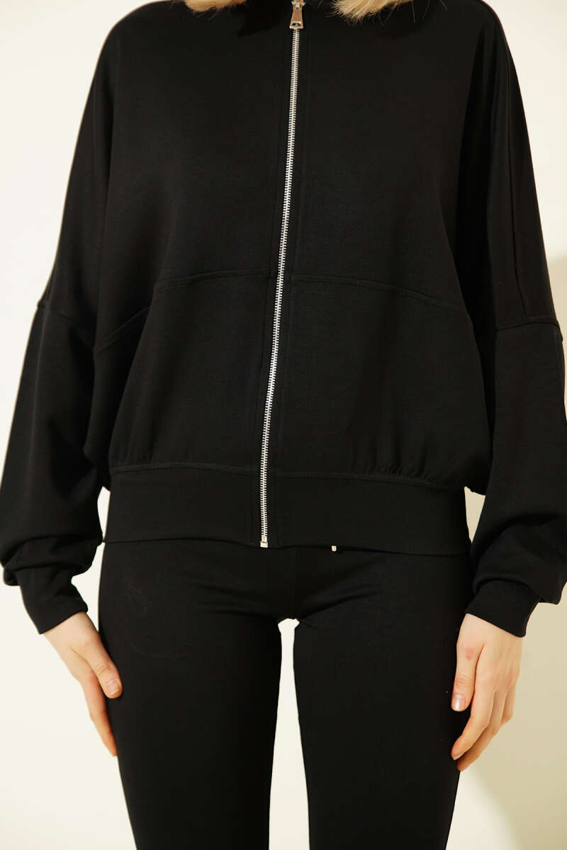 Çift Taraflı Fermuarlı Şişme Yelek Siyah Taba