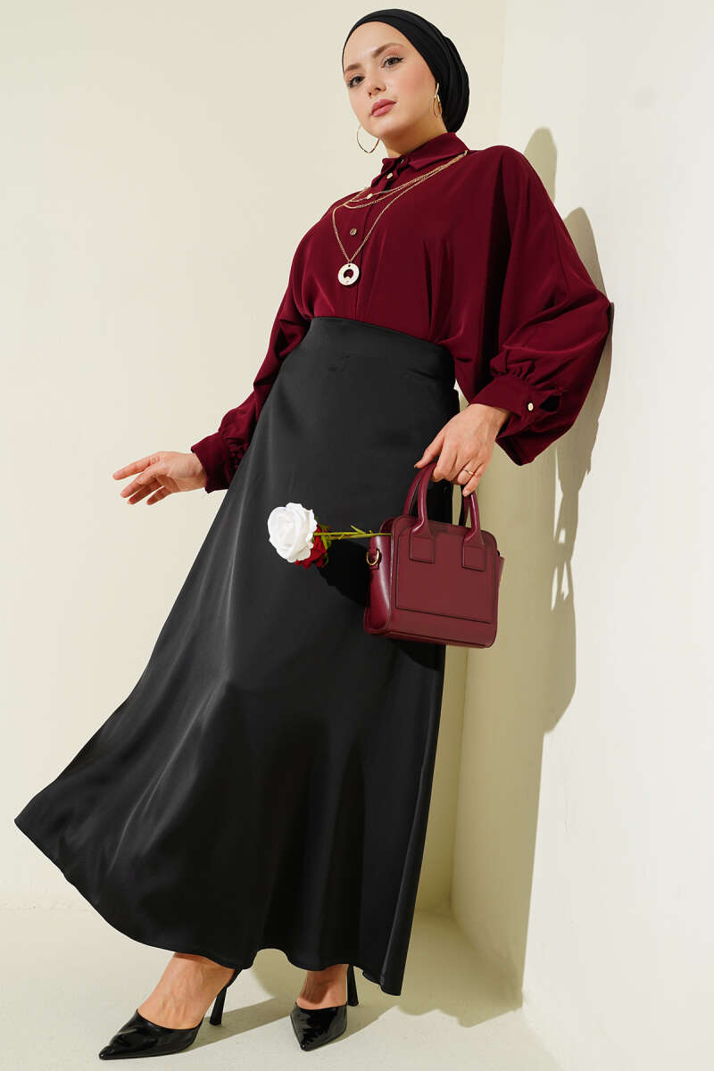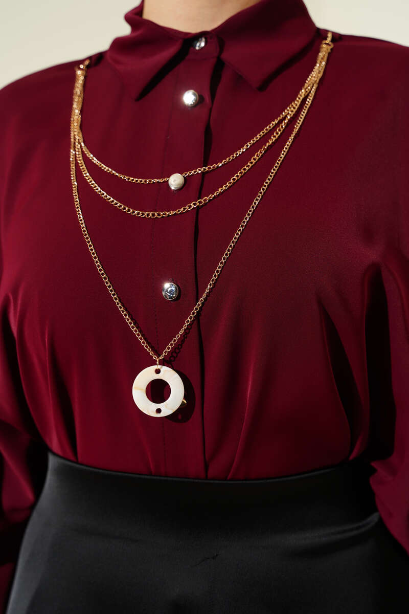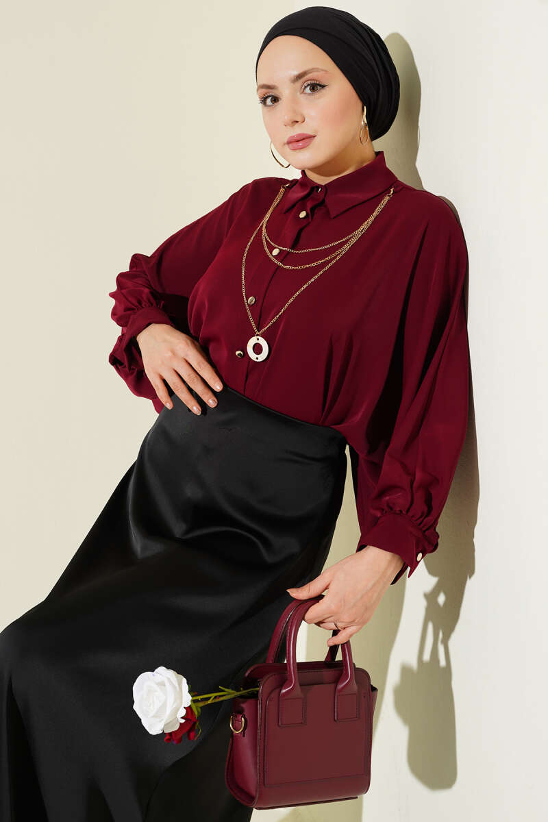Yarasa Kol Kolyeli Oversize Gömlek Bordo