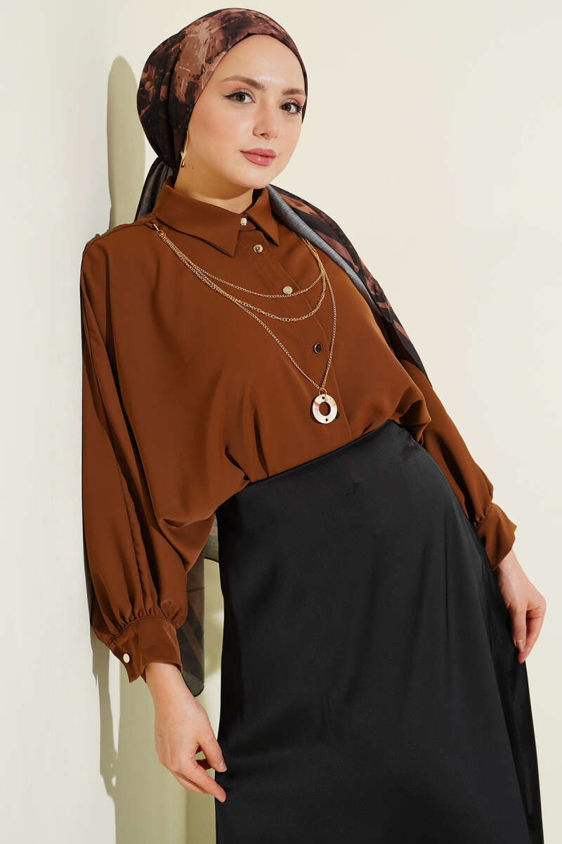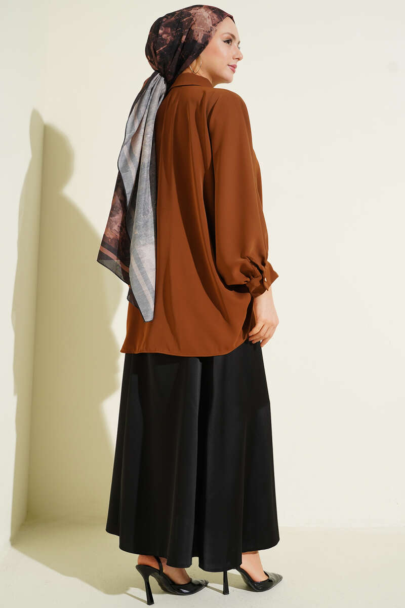 Yarasa Kol Kolyeli Oversize Gömlek Kestane