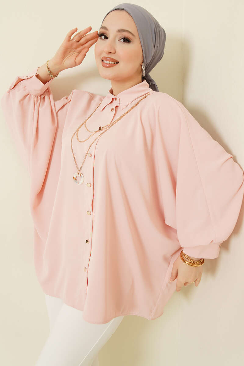 Yarasa Kol Kolyeli Oversize Gömlek Yavru Ağzı