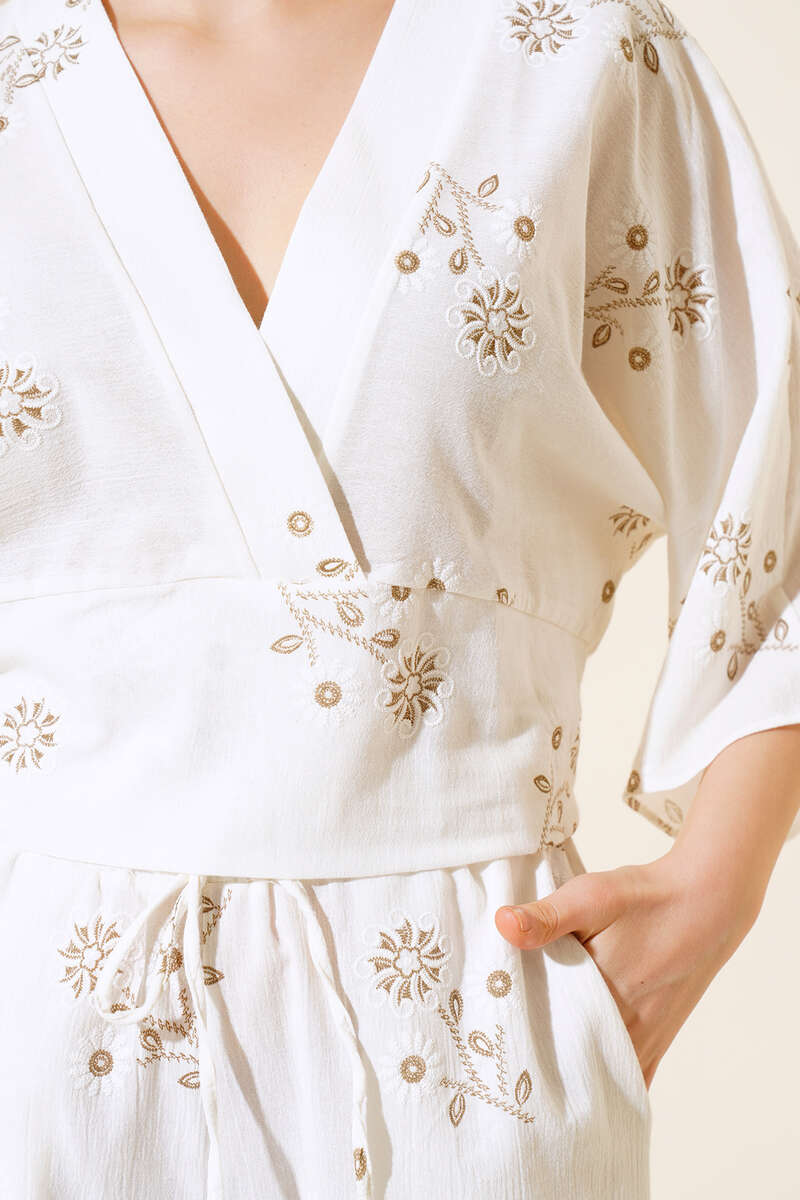 Yeni sezon ikili takım modelimiz sizlerle beraber. Cropumuz yarasa kol modeldir. V yakadır. Sırtında ip bağcığı vardır. Cropumuzun arka bel kısmı gipelidir. Pantolonumuzun beli lastiklidir. İp detayı vardır. İki adet cevi vardır. Pantolonumuz bol paçadır.