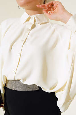 Sezonun favorileri arasında yer alan gömlek modelimiz sizlerle beraber. Yarasa kol gömlek modelimiz boydan düğmelidir. Geniş model olan gömleğimiz kombinlerinizin tamamlayıcısı olacak.