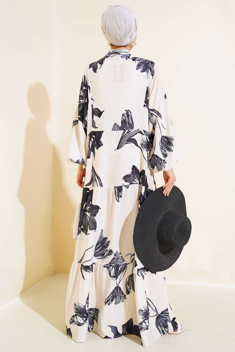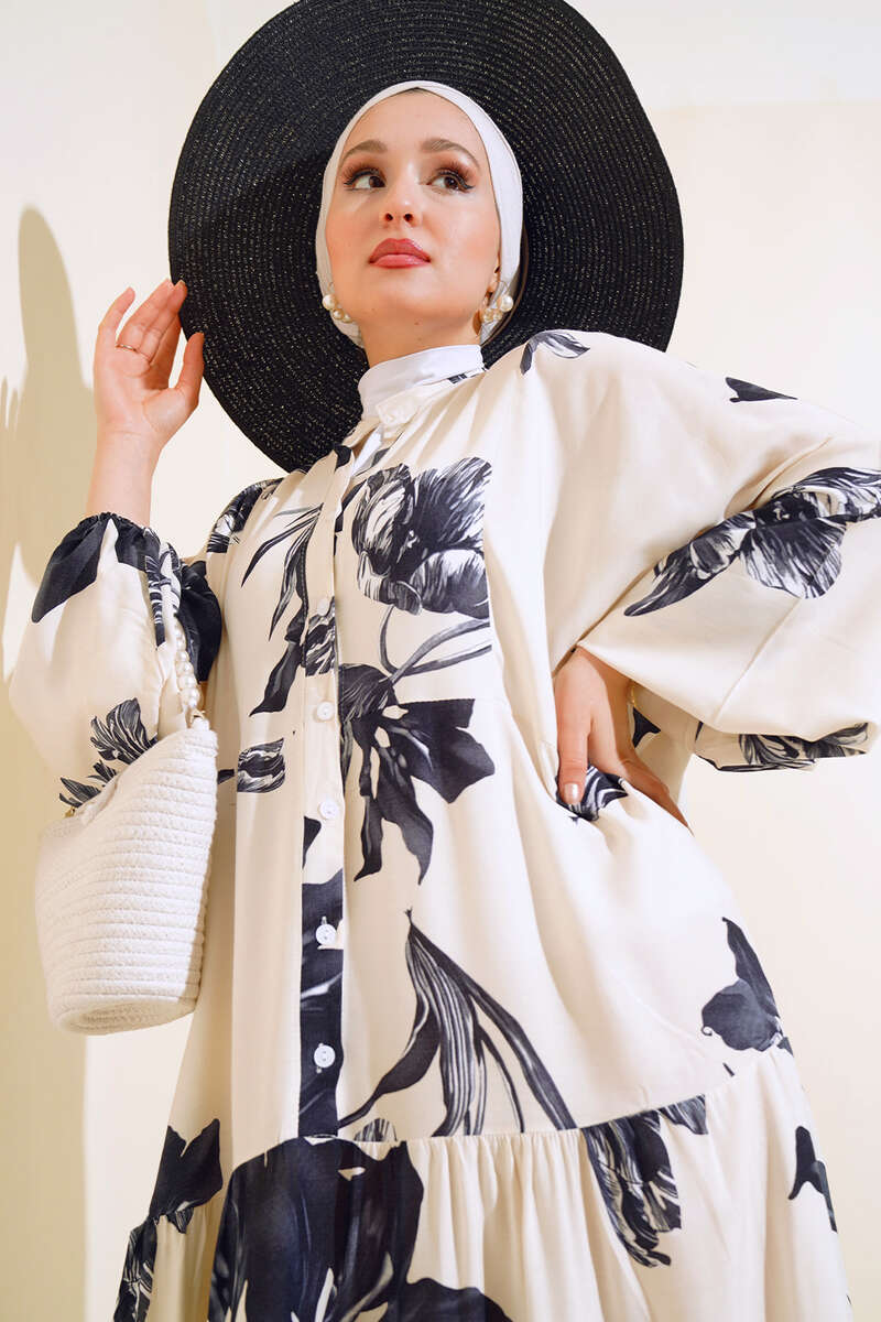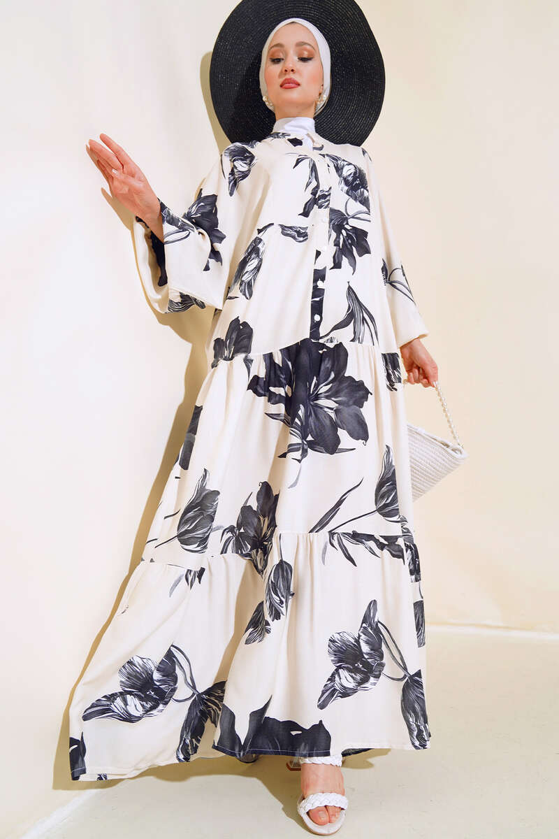 Yeni sezon elbise modelimiz sizlerle beraber. Elbisemiz yarasa koldur. Kol bilekleri lastiklidir. Önü yarım düğmelidir. Elbisemiz salaştır. Kat kat modeldir. Astarsızdır. Şık ve sportif elbisemiz oldukça rahat olup, dolabınızdaki yerini beklemektedir.