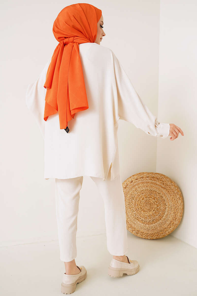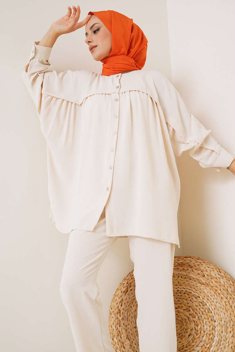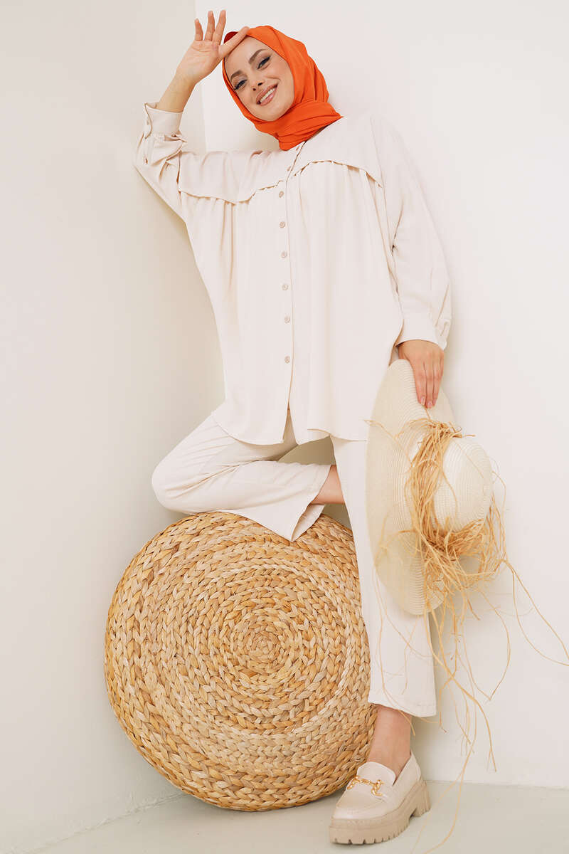 Yeni sezon iki takımımız şık ve sade tasarımıyla sizler için geldi. Gömleğimiz salaş yapıdadır. Kolları yarasa modeldir. Yanları yırtmaçlıdır. Pantolonun beli lastiklidir. İki cebi bulunmaktadır. Oldukça rahattır. Takımımızı her ortamda rahatlıkla giyebilirsiniz. Farklı renk seçenekleri mevcuttur.