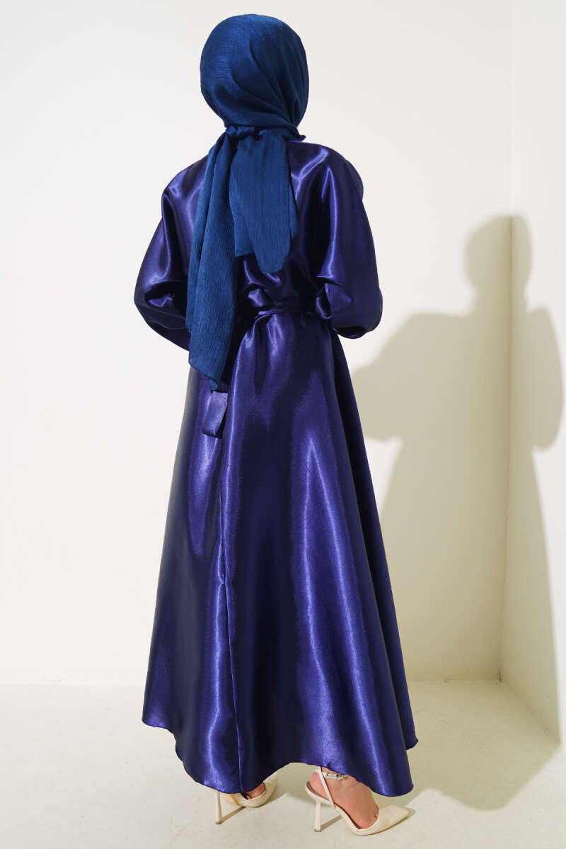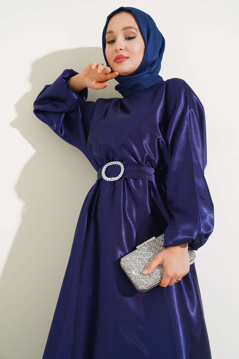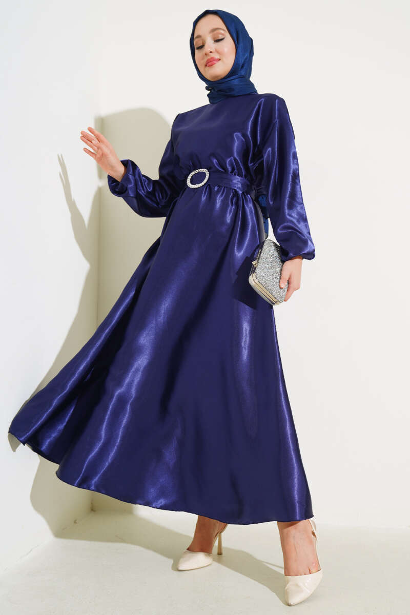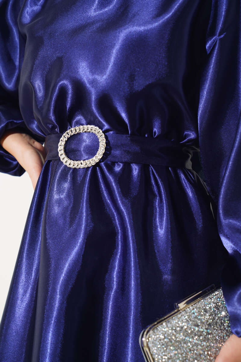 Kuşaklı Dik Fitilli Kaşe Elbise Lacivert