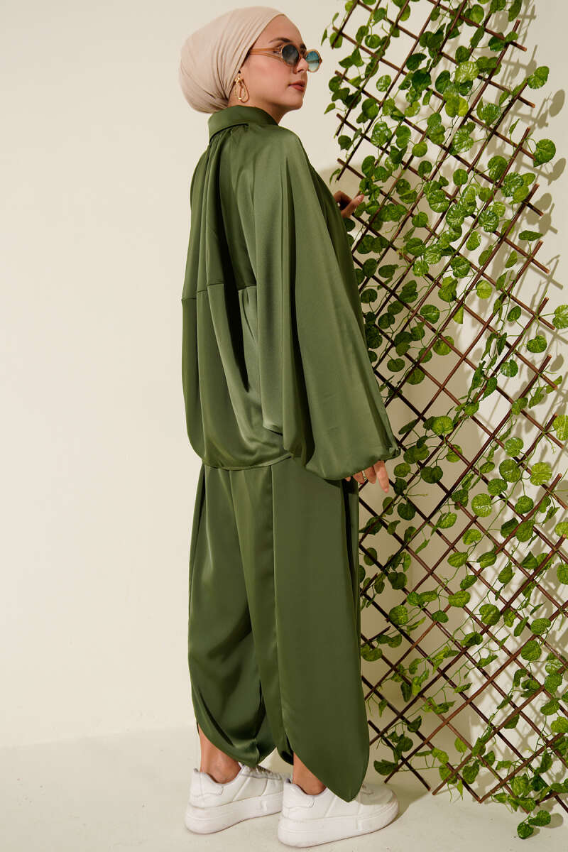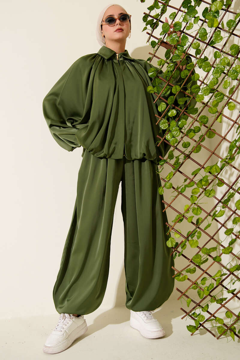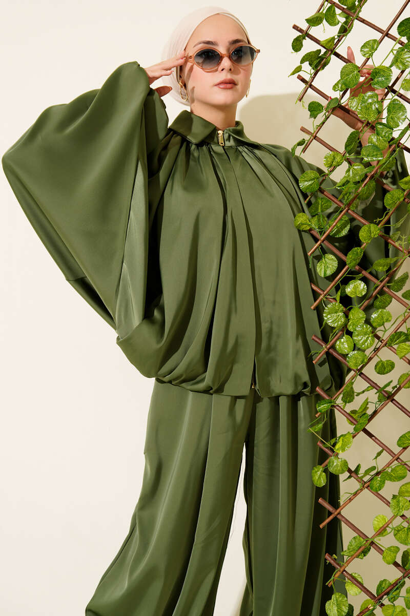 Önü Pileli Kemerli Scuba İkili Takım Haki