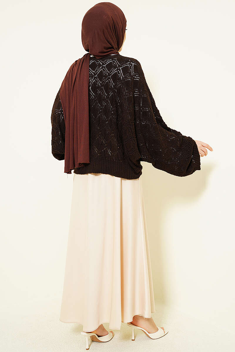 Yarasa Kol Triko Ajur Kazak Acı Kahve