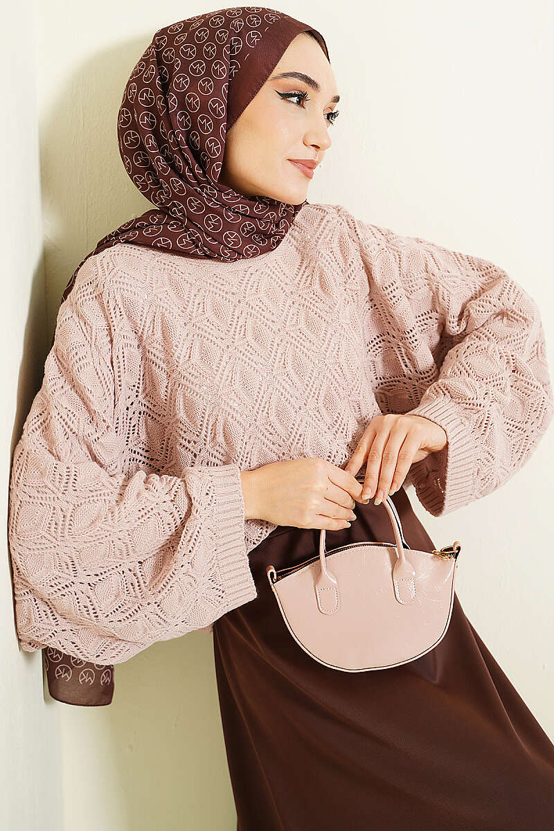 Yarasa Kol Triko Ajur Kazak Pudra