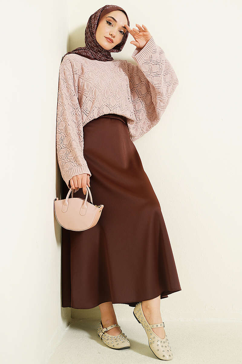 Yarasa Kol Triko Ajur Kazak Acı Kahve