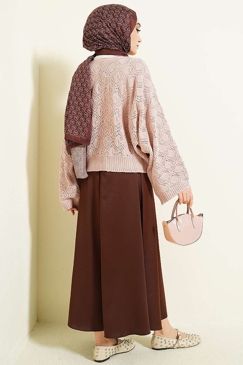 Delikli Yarasa Kol Triko Ajur Kazak Kahve