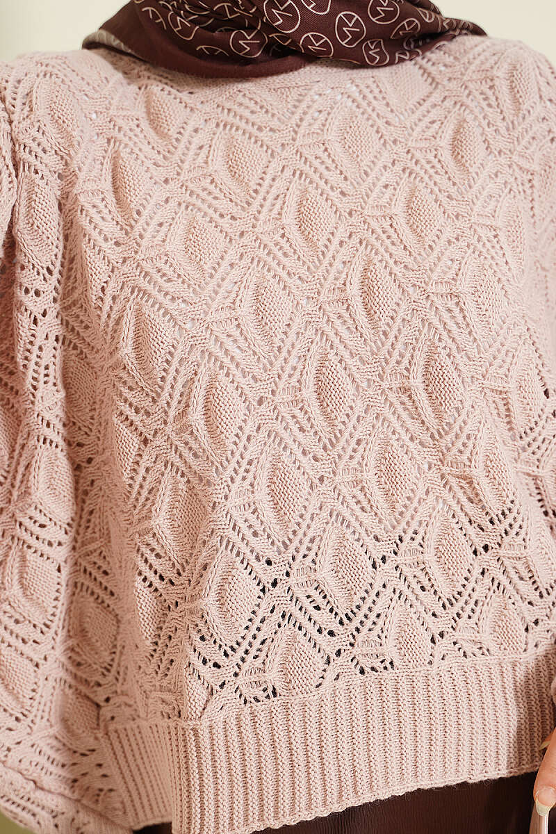 Delikli Yarasa Kol Triko Ajur Kazak Pembe