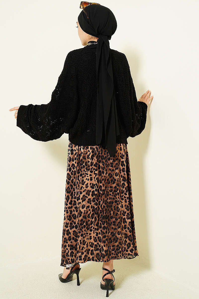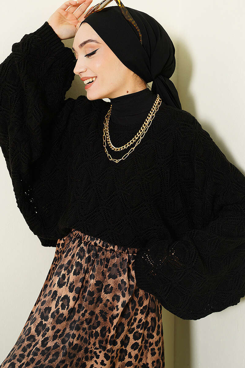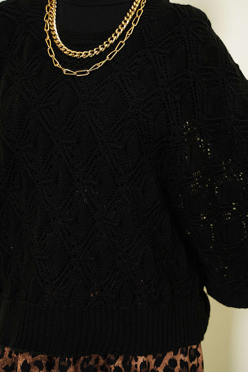 Delikli Yarasa Kol Triko Ajur Kazak Siyah