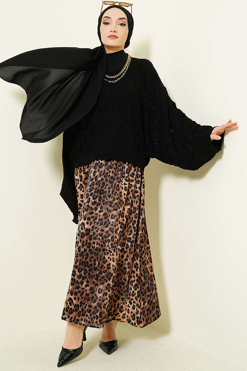 Delikli Yarasa Kol Triko Ajur Kazak Kahve