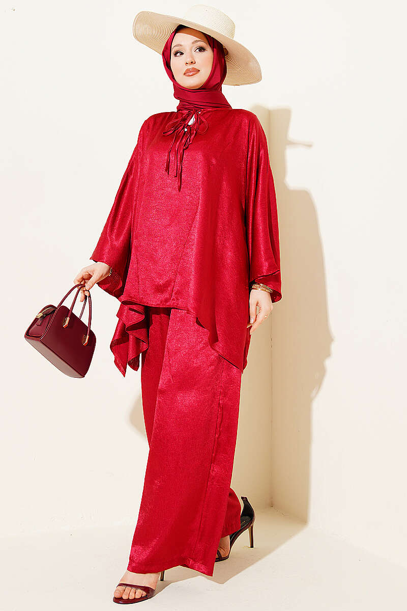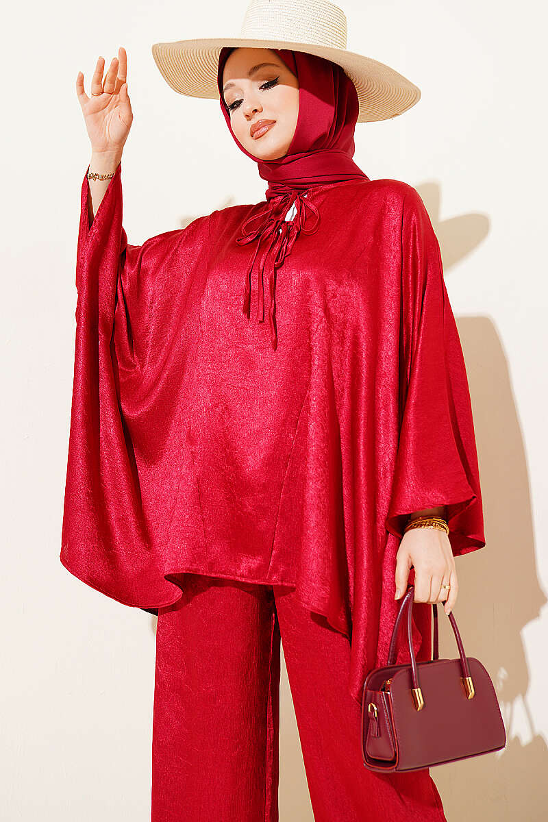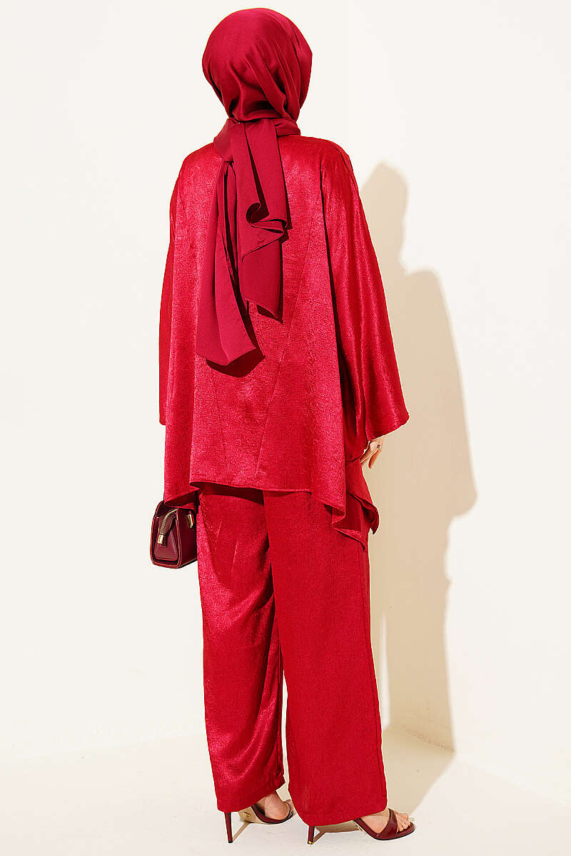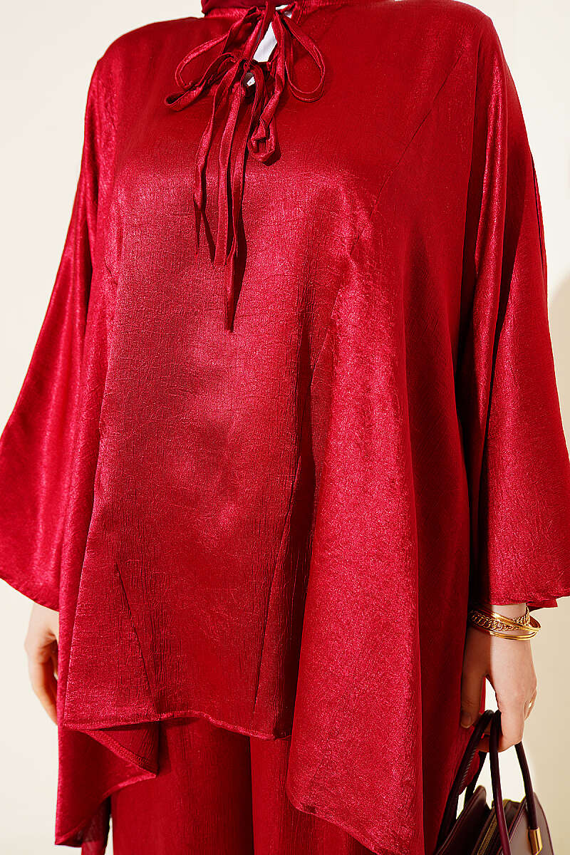 Yarasa Kol V Yaka Saten İkili Takım Bordo