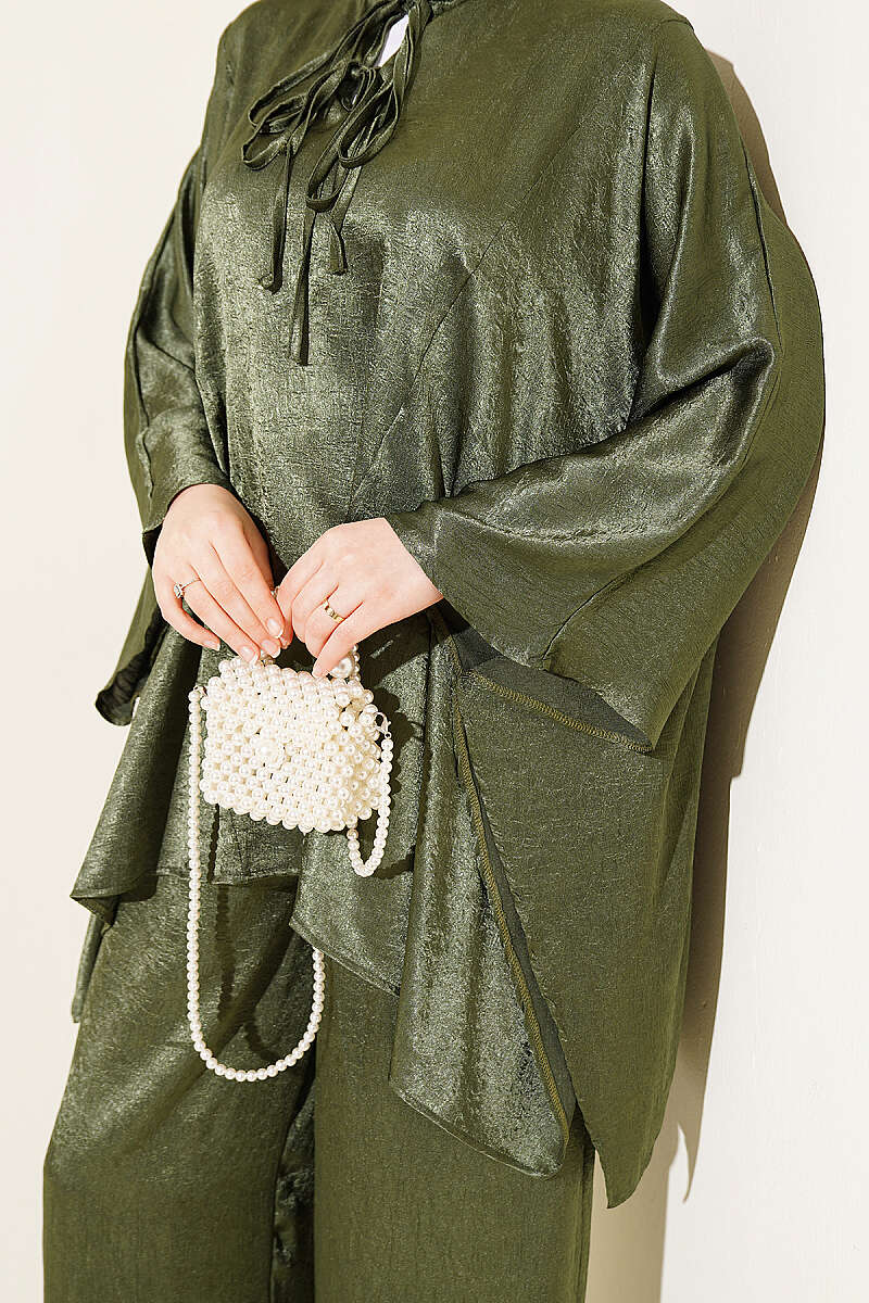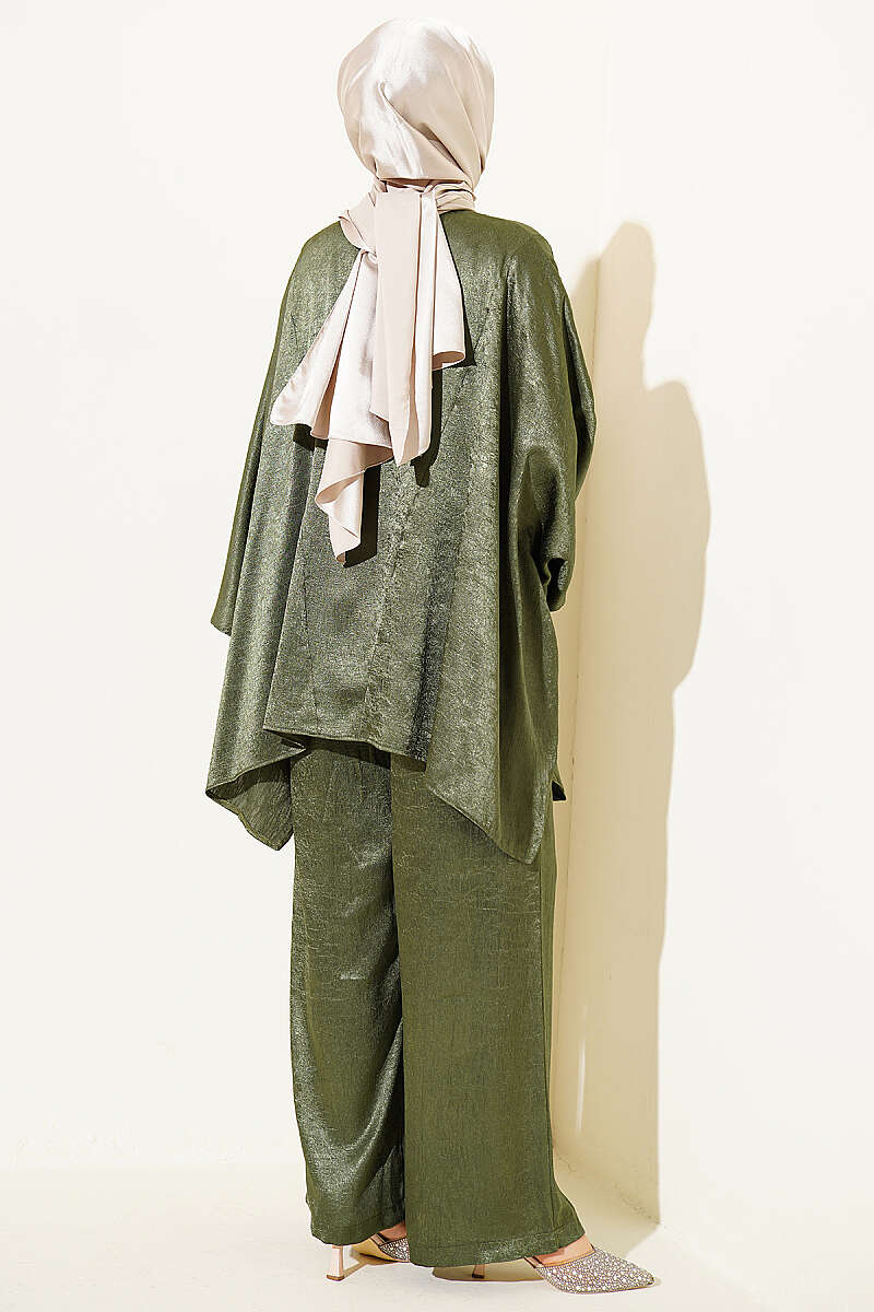 Yarasa Kol V Yaka Saten İkili Takım Haki