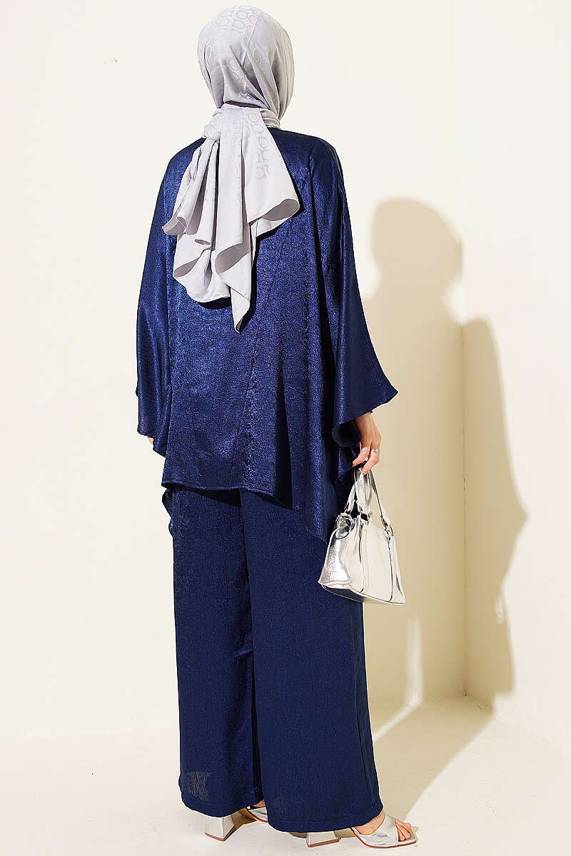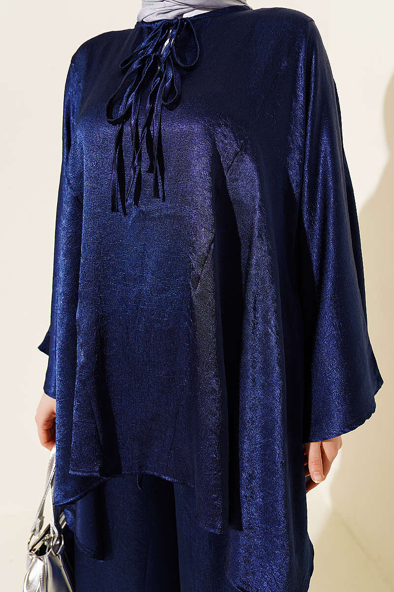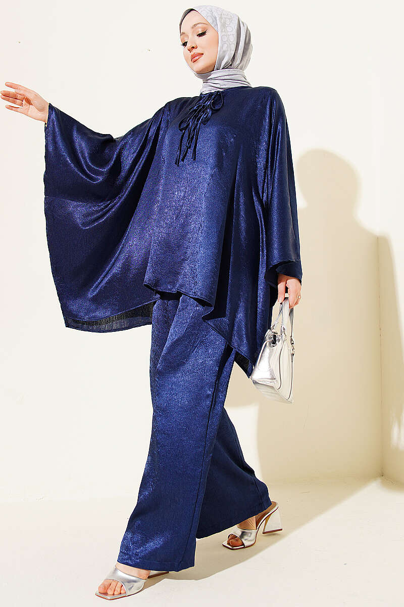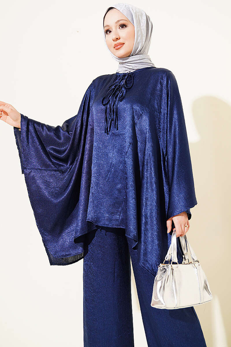 Yarasa Kol V Yaka Saten İkili Takım Lacivert