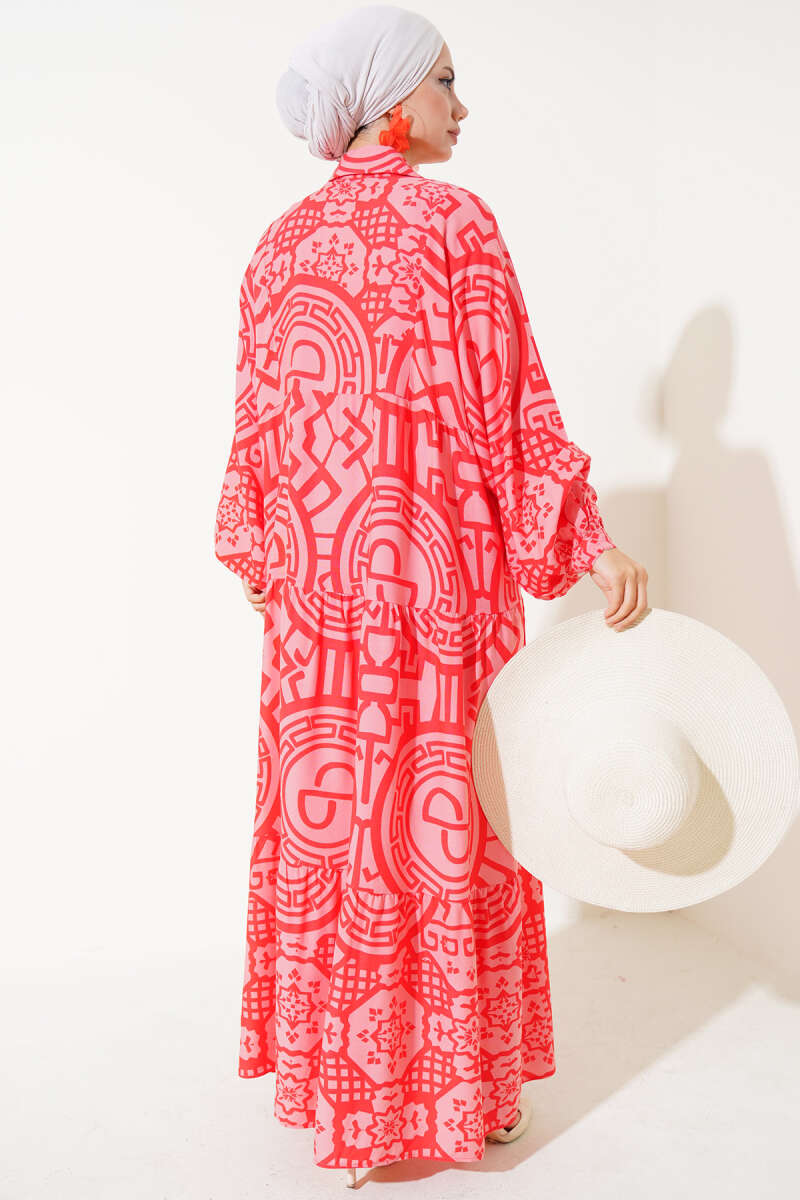 Balon Kol Pul Payet Abiye Elbise Bordo