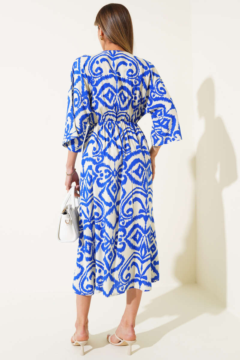 Yarasa Kollu Yırtmaçlı Elbise Saks