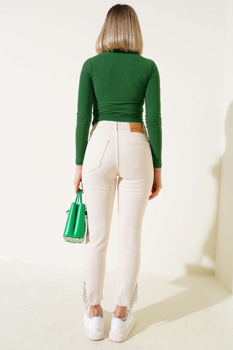 Baklava Taşlı Mom Jeans Pantolon Mavi