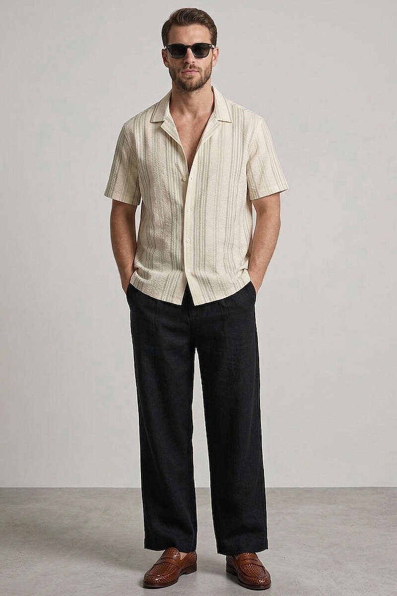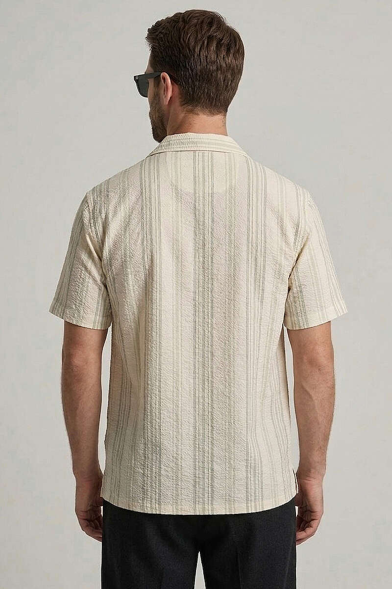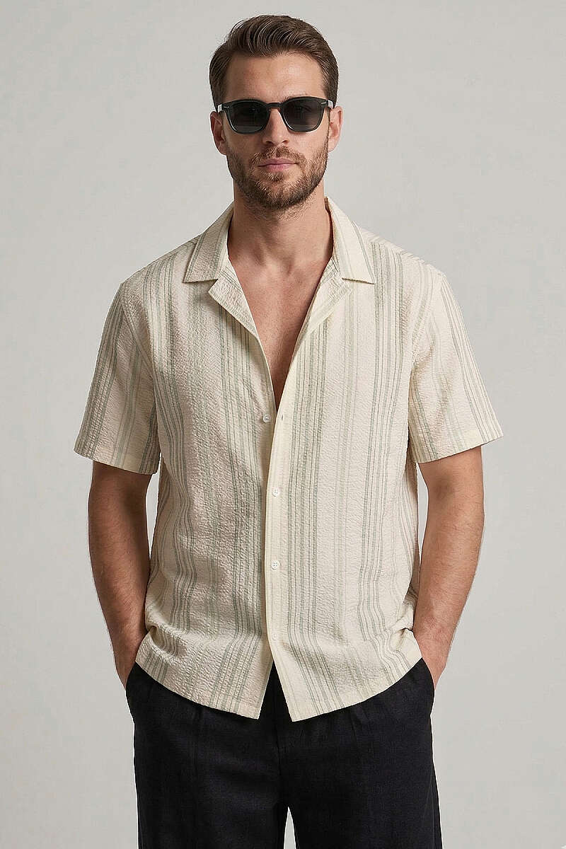 Yarı Oversize Çizgili Erkek Gömlek Yeşil