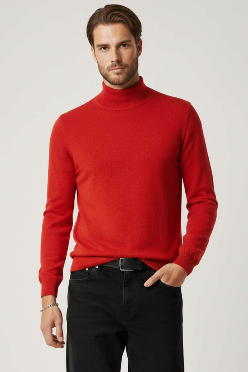 Balıkçı Yaka Saç Örgü Erkek Kazak Bordo