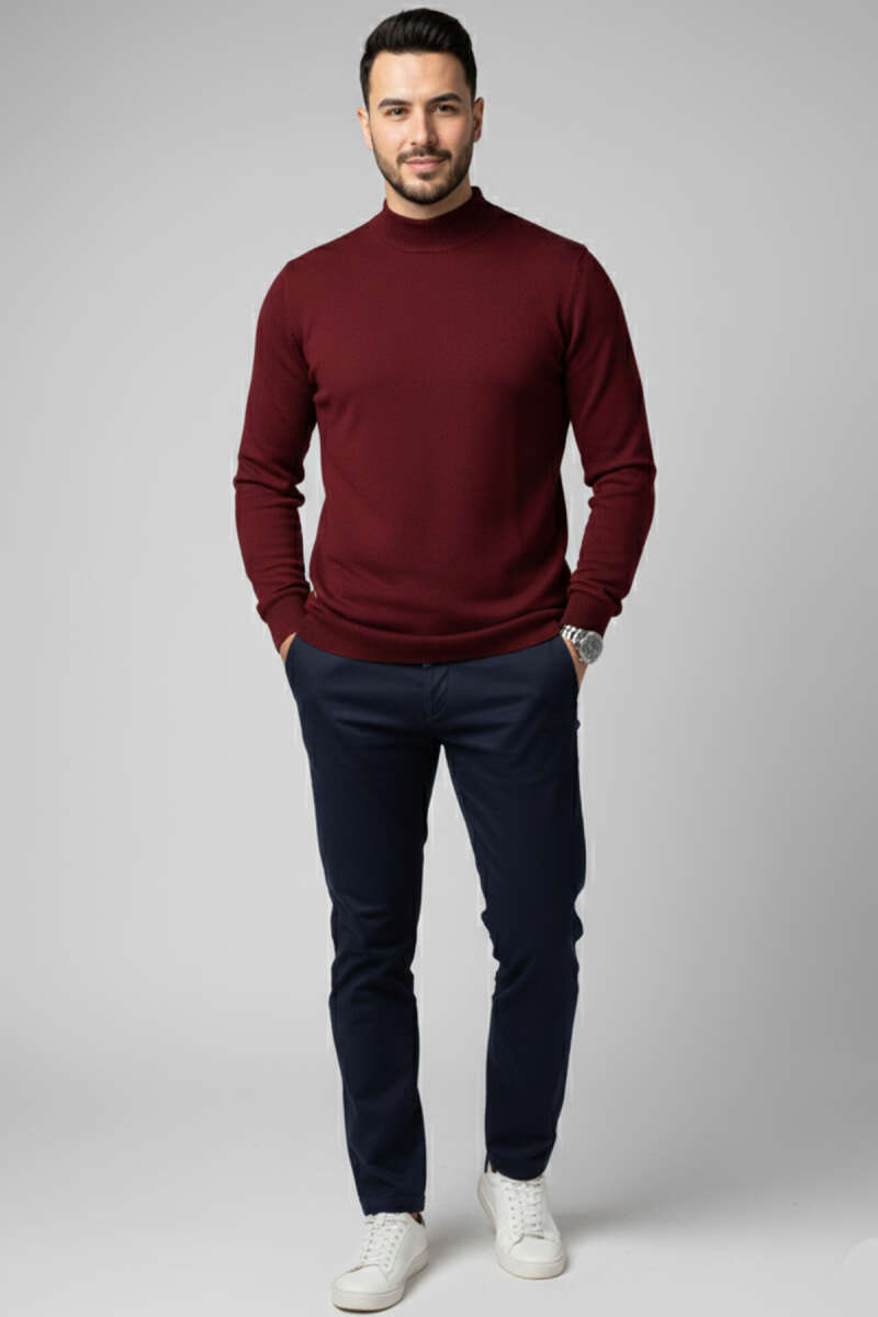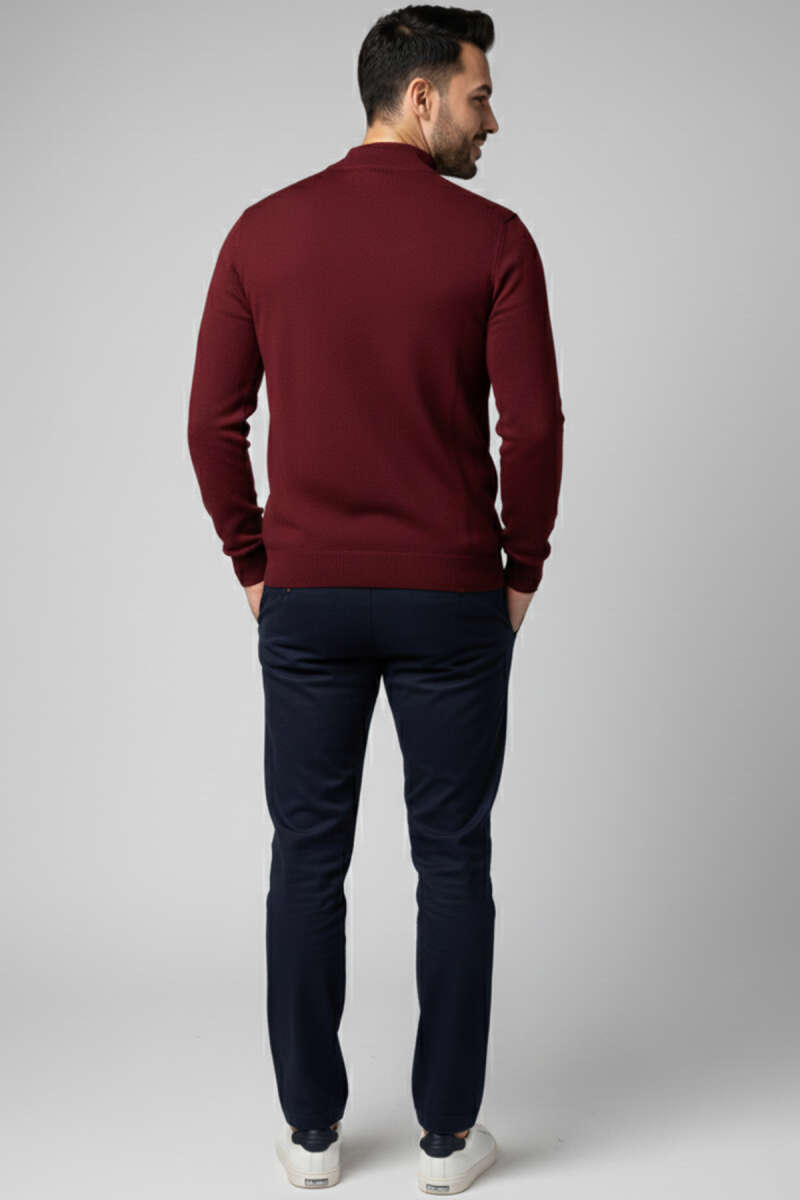 Saç Örgü Detaylı Fermuarlı Triko Kazak Lacivert