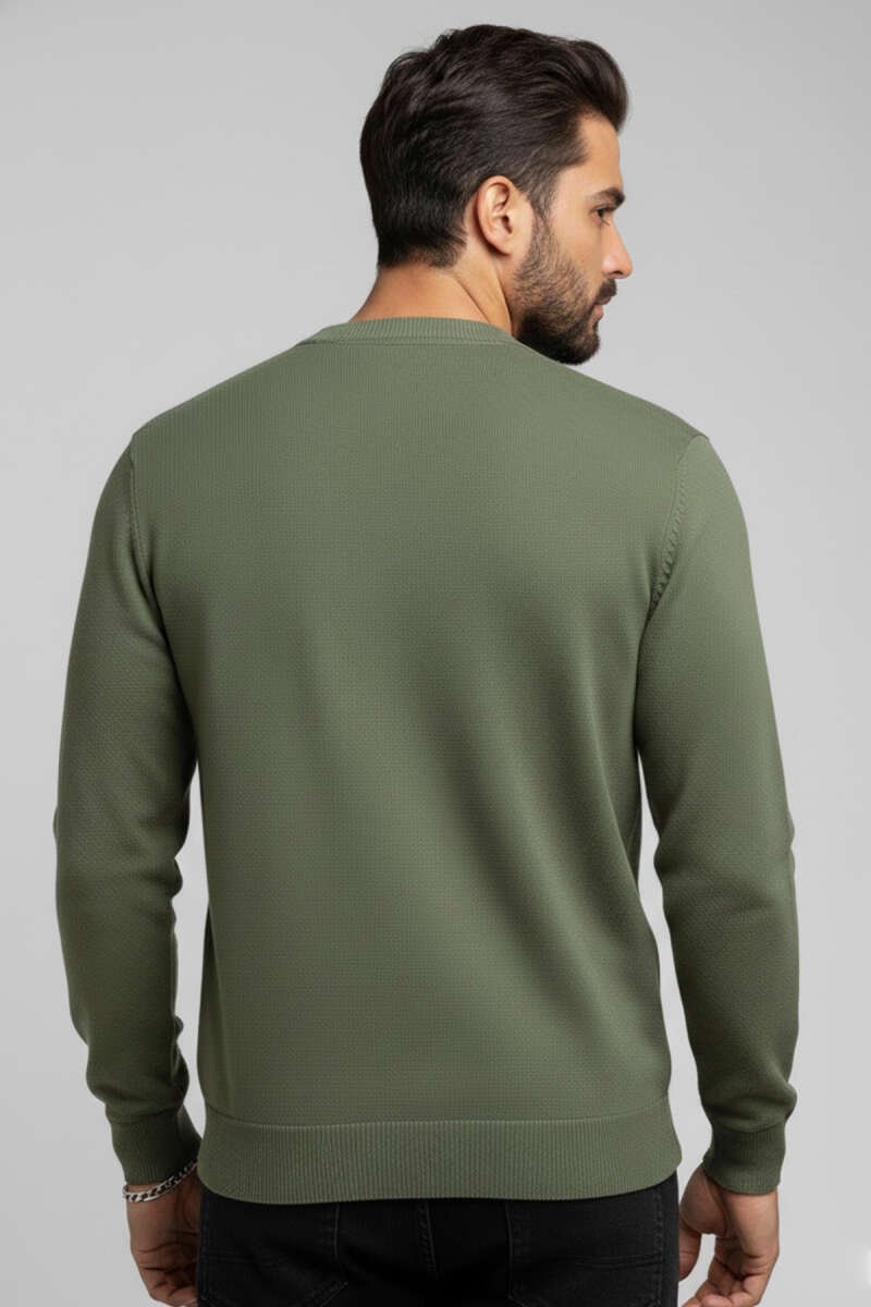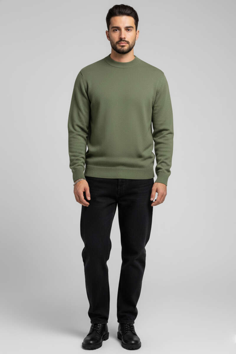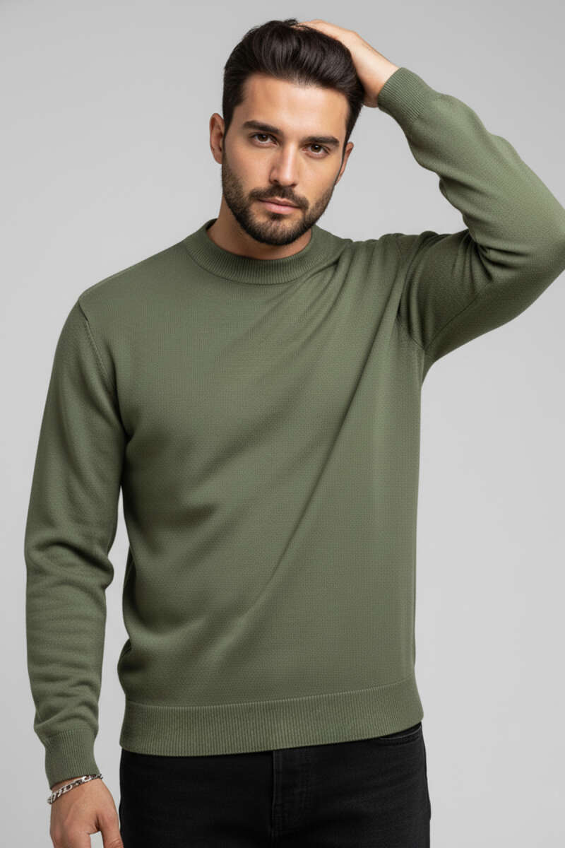 Saç Örgü Detaylı Fermuarlı Triko Kazak Haki