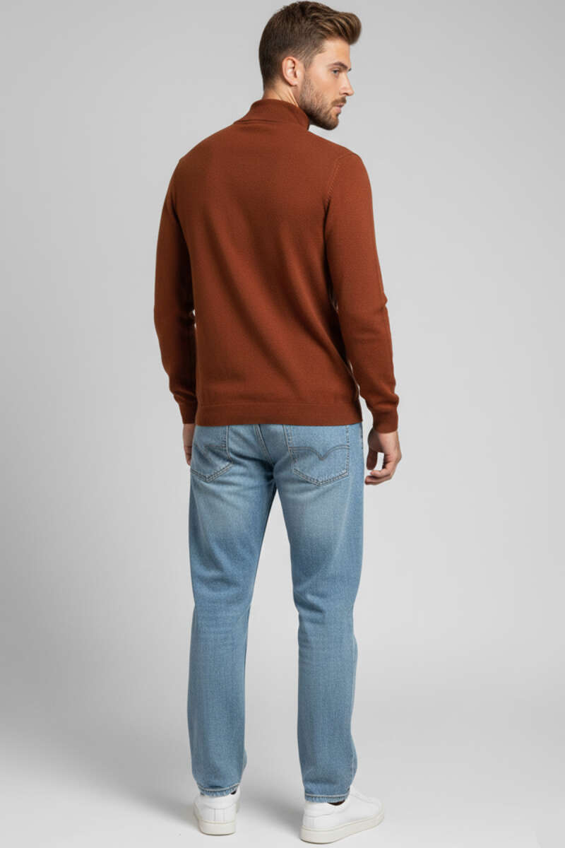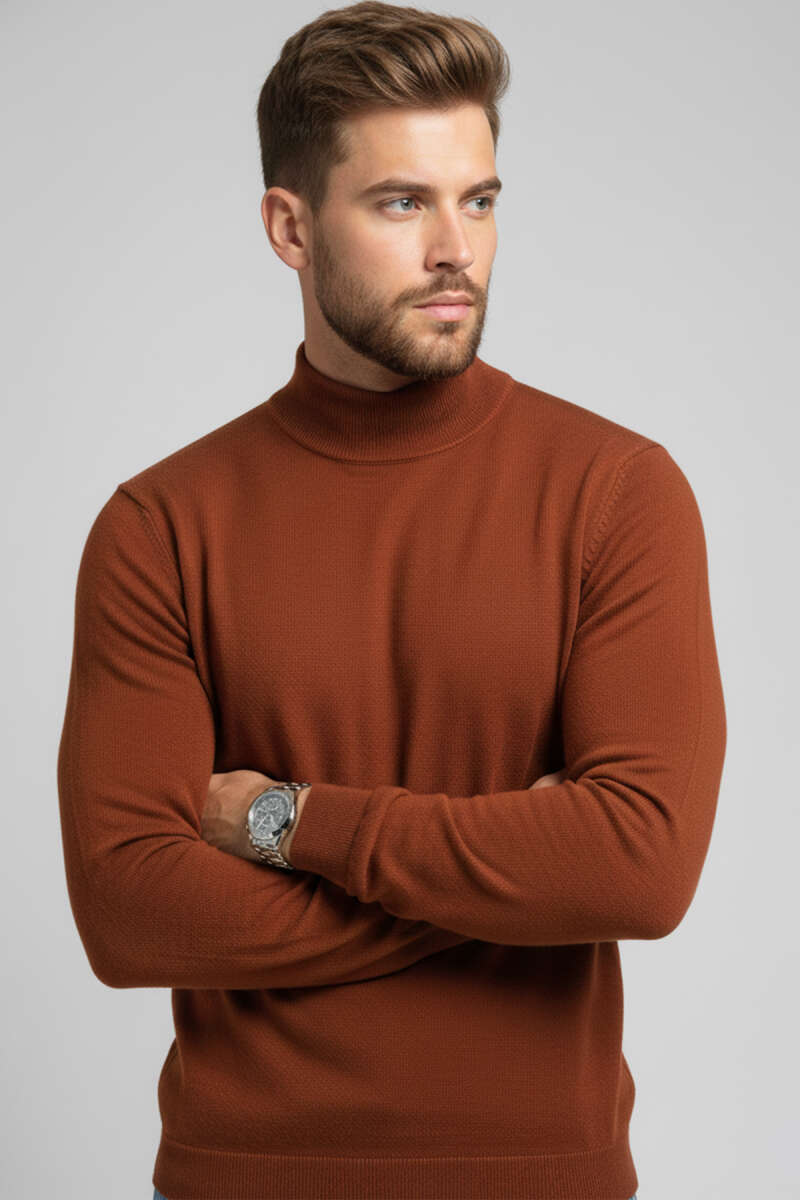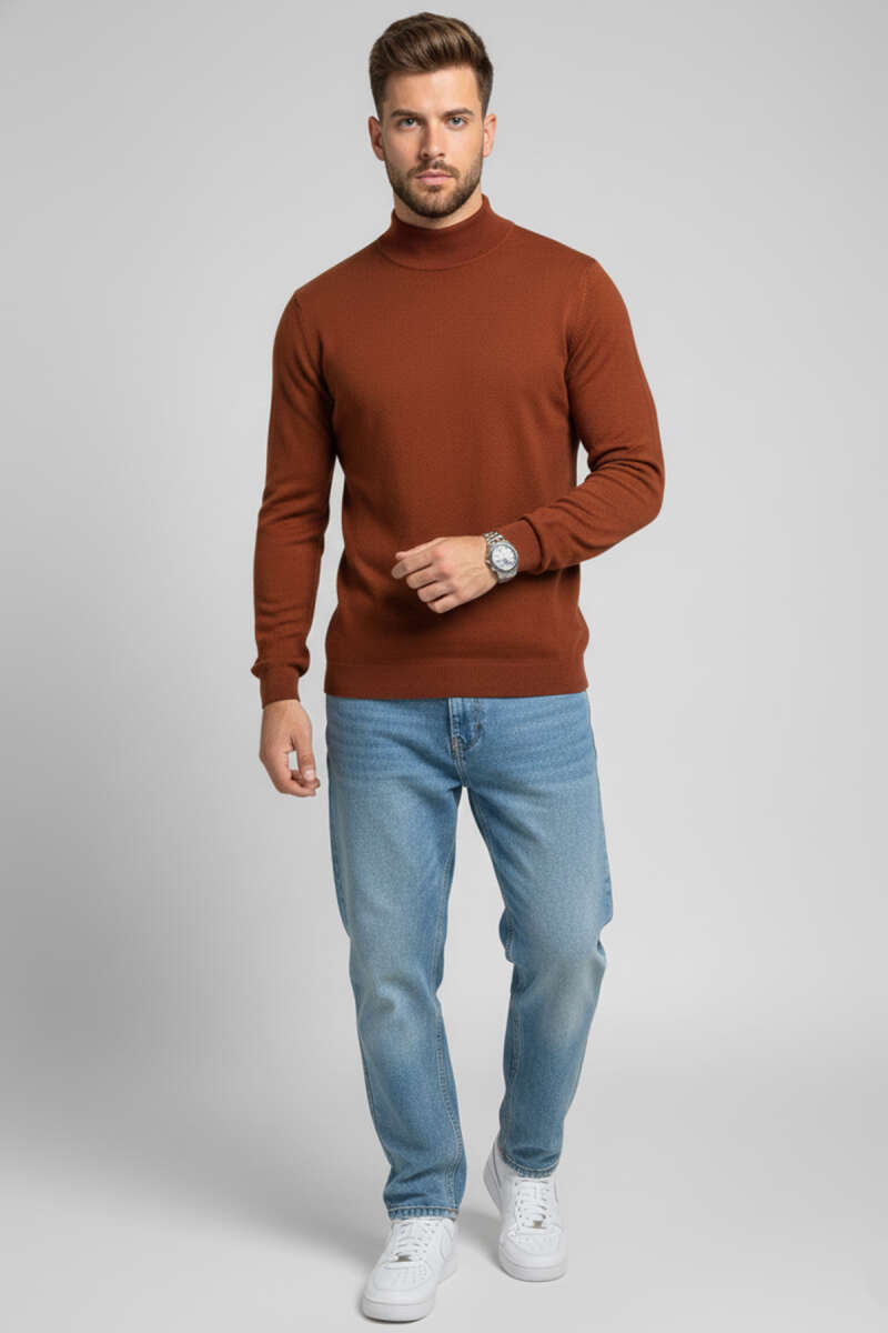 Yarım Balıkçı Basic Erkek Triko Kazak Kiremit