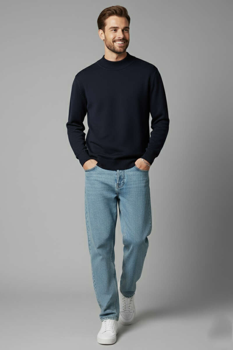 Yarım Balıkçı Basic Erkek Triko Kazak Haki