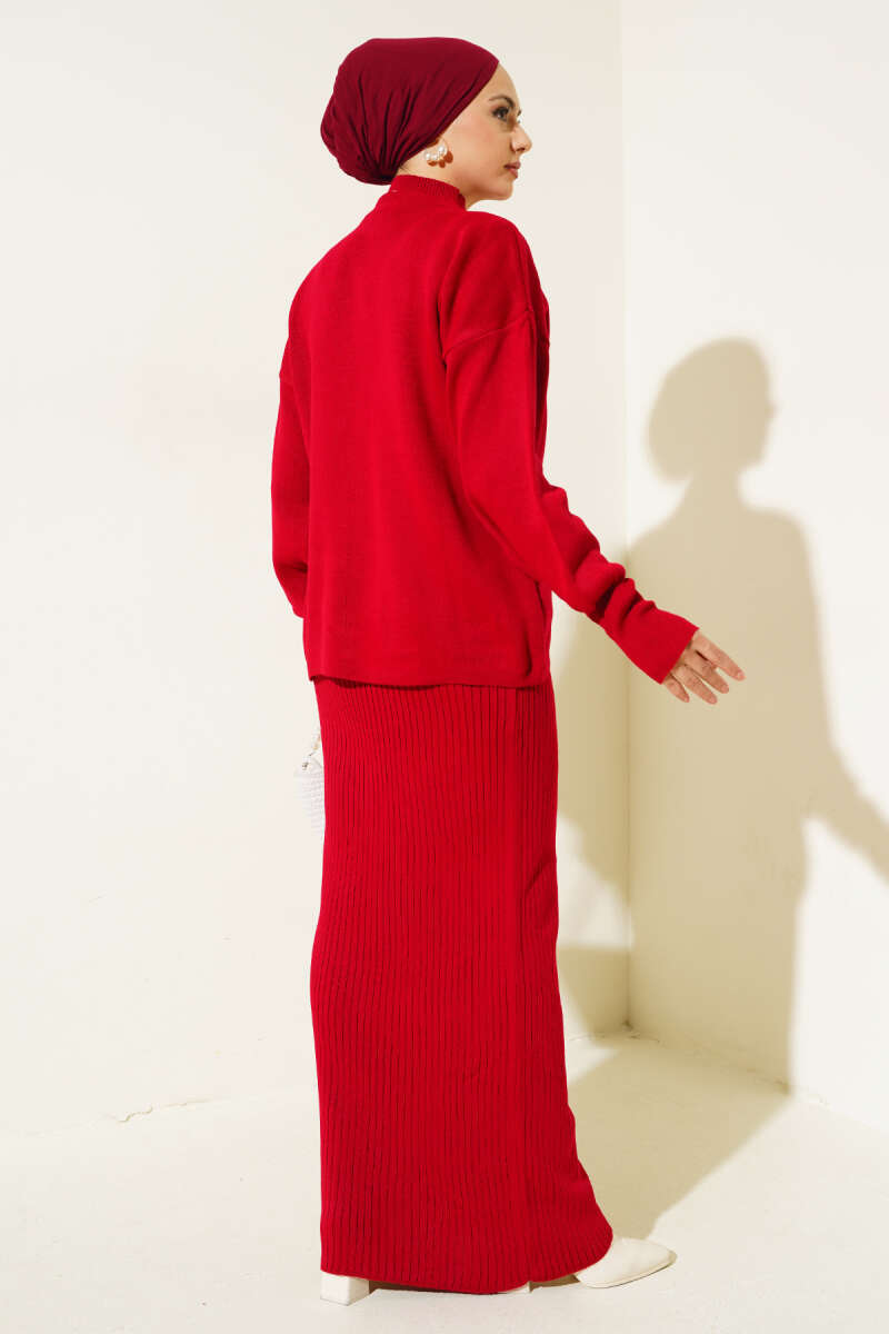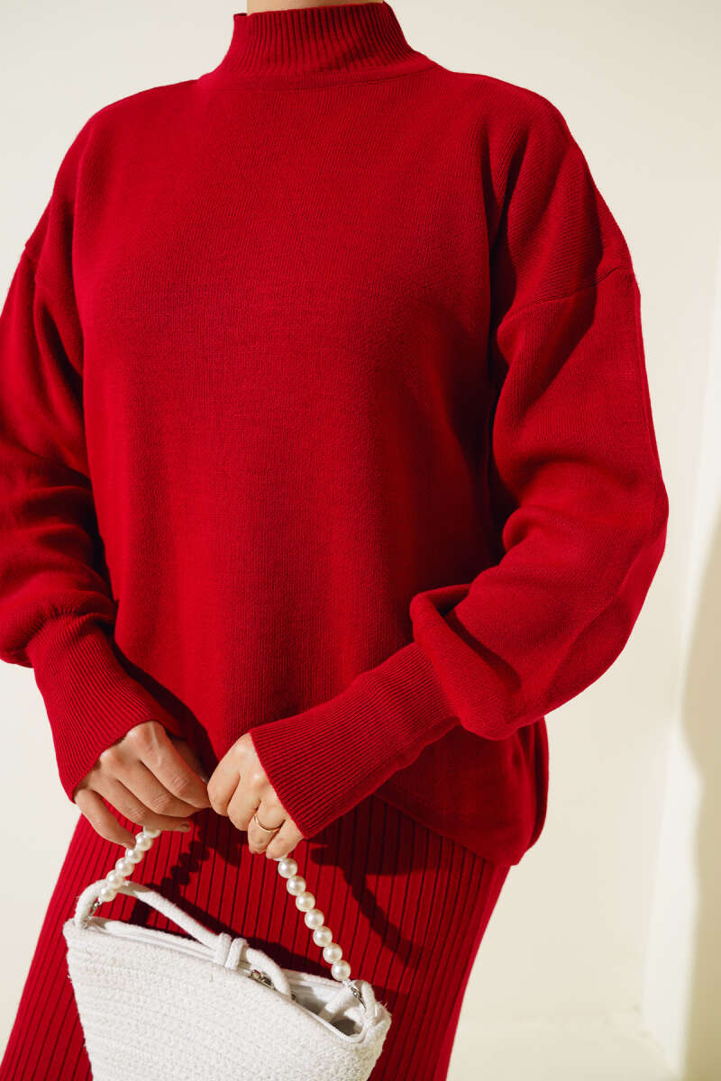 Balıkçı Yaka Fitilli Triko İkili Takım Bordo