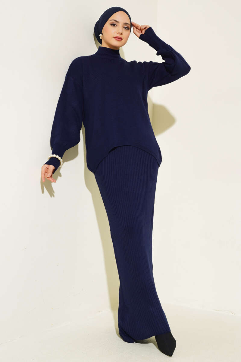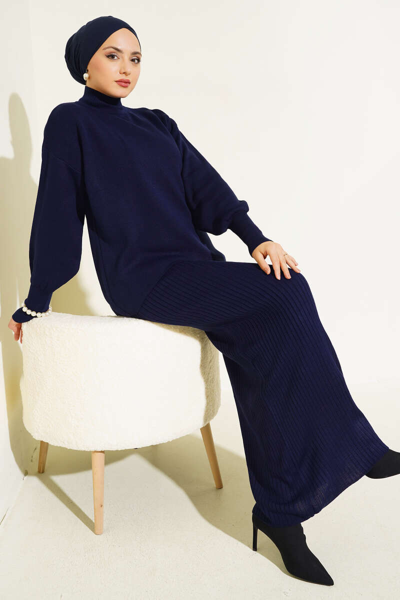 Çoban Dikişli Triko Tunik İkili Takım Nefti